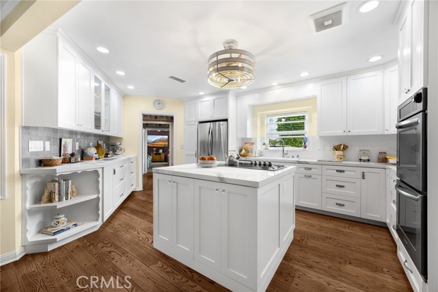 BEAUTIFUL, SINGLE-STORY HOME on a LARGE LOT in a highly sought-after Fullerton neighborhood! This home features 4 bedrooms and 3.5 bathrooms with 3,598 square feet of spacious living space on a 23,870 sq foot lot! Spacious living room at the entry with plenty of natural lighting, cozy stone fireplace, and beautiful view of the backyard. Adjacent to the living room is a small den area. The beautifully designed kitchen features a beautiful kitchen island with Viking electric cooktop, double ovens, recessed lighting and is adjacent to the dining room. The beautiful dining room includes a cozy brick fireplace, ceiling fans and has direct access to the bonus room which features a kitchenette which makes it perfect for entertaining. This home also includes a large family room area that includes large picture window with views of the backyard, and beautiful brick fireplace. The Primary Bedroom Suite includes a beautiful view of the backyard, large bedroom area, beautifully updated ensuite bathroom with glass enclosed shower, bubbling tub and LARGE walk-in closet with closet organization. Next door is another bedroom suite which includes a large bedroom area and beautifully updated bathroom with glass enclosed shower. This home also includes 2 additional HUGE bedrooms with LARGE closets and jack and jill bathroom. This BEAUTIFUL, PRIVATE backyard is made for entertaining! Backyard includes built-in BBQ station, large patio area, grassy areas, sport court, beautiful gardens, and mature landscaping. Additional features of the home include a driveway 2 car detached garage with extended driveway for extra parking, new windows except for den and so much more! Take advantage of NO HOA, close to shopping, restaurants and entertainment. THIS IS A MUST SEE! Come view this house and make it yours today!