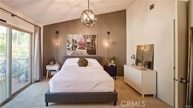 Upstairs, you’re greeted by eye-catching modern chandeliers and rich stained oak stairs that set the tone for the home’s sophisticated design. The primary suite is a true retreat, showcasing vaulted ceilings, a private balcony, a spacious walk-in closet, and a full en-suite bathroom. Two additional generously sized bedrooms feature plush new carpeting, offering comfort and a fresh, move-in-ready feel, along with a shared bath that provides flexibility for guests, family, or a stylish home office.