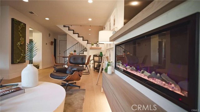 Step inside and feel instantly at home in the light-filled open floor plan, featuring elegant wide plank hardwood floors and a sleek electric fireplace that creates the perfect cozy ambiance. Designed for both everyday living and entertaining, the space flows effortlessly into a gourmet kitchen complete with tile flooring, upgraded cabinetry, and stainless steel appliances—making it as functional as it is beautiful.