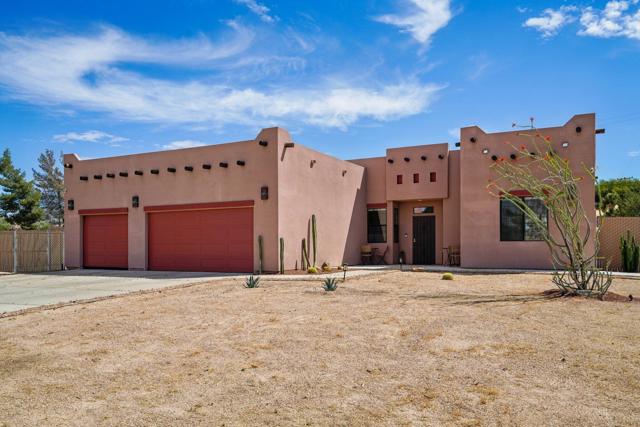 Discover a rare opportunity to own a custom-built Santa Fe-style home in the highly sought-after Sky Harbor neighborhood of Yucca Valley. This spacious 4-bedroom, 2-bath residence sits on over half an acre, offering a beautiful balance of comfort, style, and peaceful desert living.Step inside to soaring ceilings and an open-concept layout designed for both everyday living and effortless entertaining. Ceramic tile flooring flows through the main living areas and bathrooms, while newly installed luxury vinyl plank flooring adds warmth and durability to the bedrooms and closets.The thoughtfully updated kitchen features refreshed cabinetry, granite tile countertops, and a large walk-in pantry--perfect for both daily use and hosting gatherings. The inviting living area is centered around a cozy gas fireplace with a wall-mounted TV setup, creating a comfortable space to unwind. Additional upgrades include a soft water system and reverse osmosis system for added convenience and quality.The generously sized primary suite offers a relaxing retreat, complete with dual sinks, a spacious layout, and a walk-in closet. Each bedroom is equipped with ceiling fans and mirrored wardrobe doors, combining comfort with a touch of style.An indoor laundry room conveniently located just off the kitchen leads to the attached 3-car garage, while the extended driveway provides plenty of additional parking.Step outside to enjoy a fully fenced backyard with RV parking and rear vehicle access. The covered patio and newly added concrete create an ideal outdoor space for entertaining or simply enjoying quiet evenings under the desert sky.Located just minutes from the Black Rock Canyon entrance of Joshua Tree National Park, and within walking distance to scenic hiking trails and a local dog park, this home truly captures the essence of high desert living.