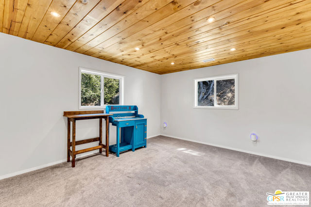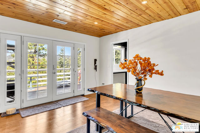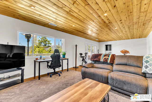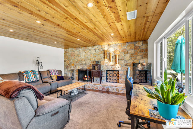 Welcome to 23971 Skyview Drive, a spacious & tranquil mountain home nestled within the gated neighborhood of Stonewood Canyon. This property offers the perfect blend of serenity and convenience, being just a short distance from the charming village of Idyllwild. Situated on 1.43 acres, accessed by a long driveway, this home boasts amazing views that are sure to captivate. With 3 levels, 2,223 sq ft, with 4 bedrooms and 2.75 bathrooms. The lower level with a separate entry features a cozy bedroom with a fireplace, 2 additional bedrooms are located on the main floor. The upper level has a large primary suite. The kitchen has stainless steel appliances. The living room is highlighted by a Knotty Pine T&G ceiling, stone fireplace and a separate wood-burning stove. French doors lead out to a large deck offering a perfect spot to enjoy the sights and sounds of nature and breathtaking views. Recent updates include an electrical panel and Tesla charger (2023), rain gutters (2024) repaved and sealed driveway (2025) a newer water heater, central heating, Generac Generator (2025) LVP flooring, recessed lighting, paint both inside and out. Enjoy the 1-car garage and 3-car carport.