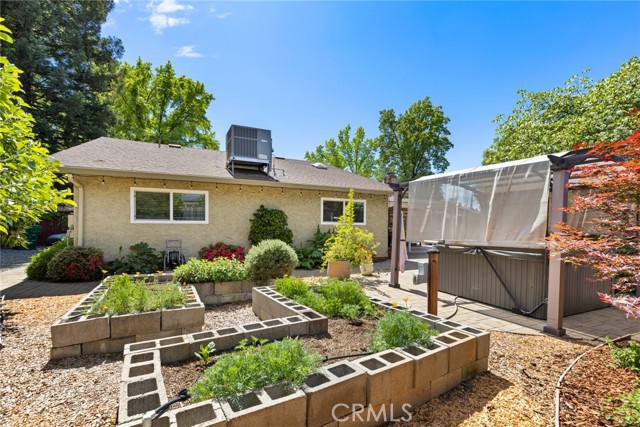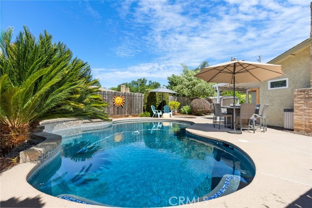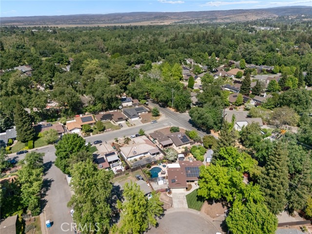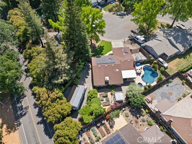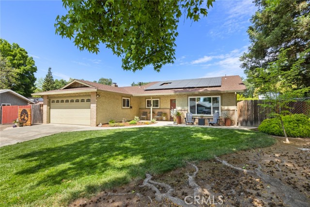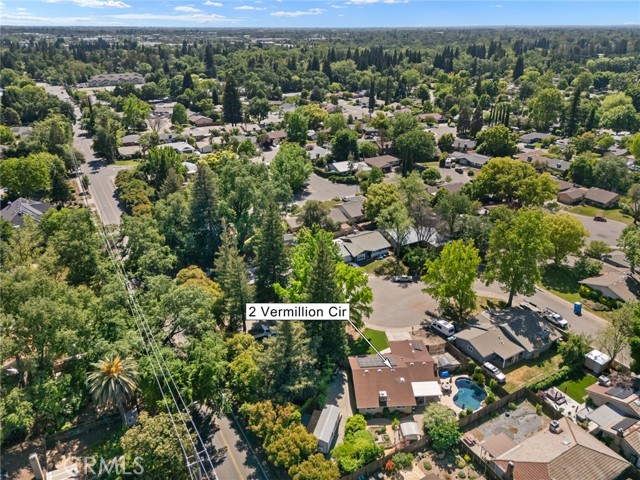 Welcome to 2 Vermillion Circle—an exceptional Chico property tucked at the end of a quiet cul-de-sac, just blocks from the trails, open space, and lifestyle of Lower Bidwell Park. With thoughtful upgrades throughout and incredible outdoor amenities, this home offers the perfect blend of comfort and efficiency. Inside, the home has been beautifully updated with luxury vinyl plank flooring and a spacious, functional layout featuring separate living and family rooms. The remodeled kitchen is a true centerpiece, complete with quartz countertops, a butcher block island, stainless steel appliances, a 5-burner gas range, farmhouse sink, and convenient eating bar—ideal for both everyday living and entertaining. The living room offers a cozy fireplace, and dual-pane windows are found throughout the home. Energy efficiency and comfort are front and center, with owned solar, a newer HVAC system (approximately 2 years old), dual-pane windows, whole house fan, and an on-demand hot water heater—all working together to keep utility costs down and comfort levels high. Step outside to a truly special backyard designed for relaxation and enjoyment. The park-like setting includes an in-ground swimming pool, hot tub, raised garden beds, patios & pavers, and a variety of mature fruit trees (full list available). A detached “tiny home” with its own mini-split system and half bath—currently used as a home office—offers incredible flexibility for a guest space, art studio, workout room, or private retreat (not included in square footage).Additional highlights include RV parking and access, updated bathrooms with beautiful tile work, a stunning tiled walk-in shower in the primary suite, and ceiling fans in all bedrooms.Located with convenient access to the freeway, shopping, and restaurants—yet just moments from one of Chico’s most beloved outdoor destinations—this property truly has it all.