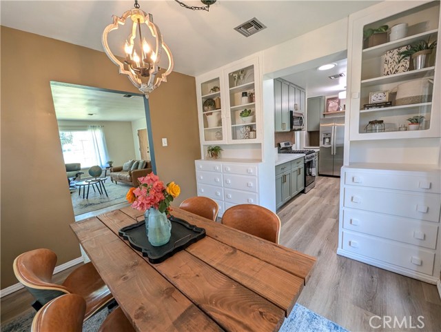 Separate Dining Room with built in Cabinets and French doors leading out to the large Covered Patio Perfect for Entertaining!