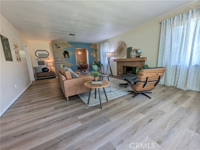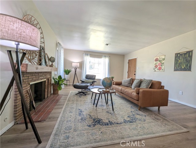 The Huge Living room features tasteful designer touches, Fireplace and New Laminate Flooring!