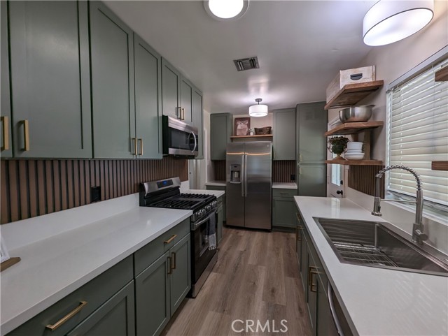 The All new Kitchen is Elegantly designed with New Shaker style Cabinets, Quartz Counter tops, Deep sink with all new fixtures, Dishwasher, Gas range and Refrigerator is Included!!