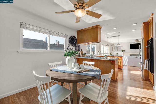 Welcome to this light-filled, Northeast-facing home, just minutes to award-winning schools and easy access to both I-580 and I-680. Thoughtfully designed for flexibility and comfort, the home features a primary bedroom with a full bath on the main level, complete with a spacious walk-in closet and sliding door opening to the backyard. A convenient additional half bath on the first floor. Upstairs offers three additional bedrooms, including one oversized room ideal as a second primary, plus a large hall bathroom with separate shower and jacuzzi tub. The kitchen is the heart of the home, boasting dual peninsulas with bar seating on both sides, a gas range, new refrigerator, and warm maple cabinetry. It opens seamlessly to the family room, with an adjacent eating area. Abundant natural light throughout the home is truly exceptional! Additional highlights include an inside laundry room with new washer & dryer, and a garage with extensive storage, plus a loft, easily accessed by stairs. Outside, enjoy a large side yard with potential RV access, an in-ground pool with separate hot tub, and a beautiful deck with terraced planter boxes. Tall fencing provides privacy, creating a backyard retreat. With newer carpet and fresh interior paint, this home shines and is truly move-in ready!