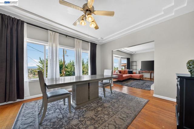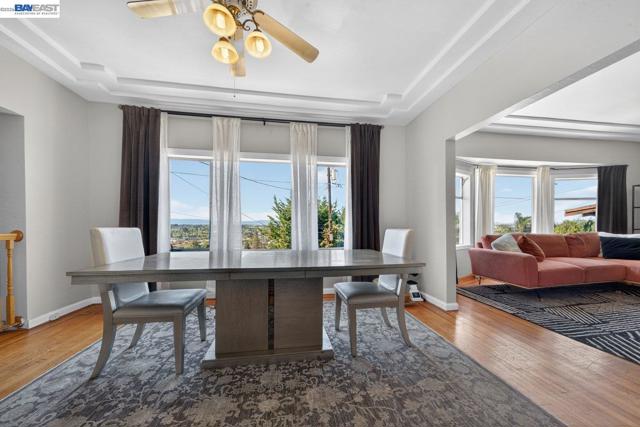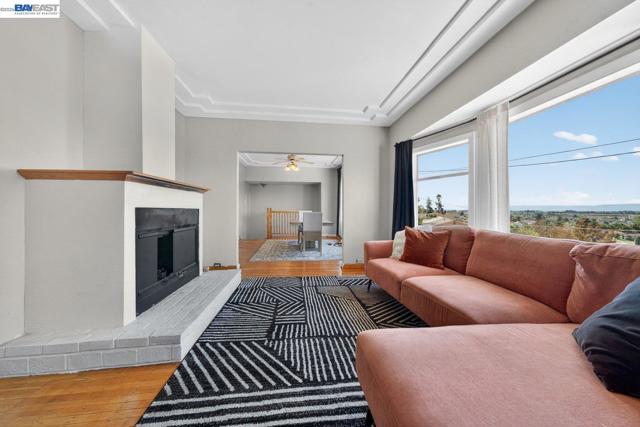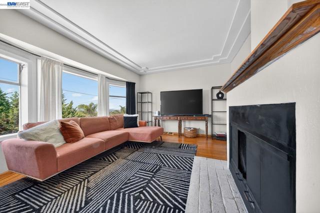 Flooded with natural light and bay views, this spacious 1700 square feet 2-bedroom, 2-bath home with bonus room and attached one car garage and attached 1-bedroom/1-bath ADU offers incredible flexibility for multi generational living or extra income potential. Light-filled living and dining rooms feature large picture windows, elegant ceiling details, and a cozy fireplace, flowing into an expansive kitchen with abundant cabinetry, generous counter space, gas range, and dishwasher—perfect for everyday cooking and entertaining. The main-level has 2 bedrooms and bathroom with shower over tub. Downstairs, a versatile bonus room, bath with shower and dedicated laundry area create ideal space for a home office, gym, or media room, with additional storage and project potential. Outdoor living shines with 7,500 lot size, a brick front terrace and private rear courtyard, offering low-maintenance areas for barbecues, gardening, or simply relaxing Attached ADU enjoys full kitchen, bedroom, and bathroom—an excellent setup for extended family, or rental opportunity. Enjoy sweeping panoramic views including the Golden Gate Bridge, San Francisco–Oakland Bay Bridge, and San Mateo–Hayward Bridge. The backyard provides a rare vantage point to take in Fourth of July fireworks displays across Oak.