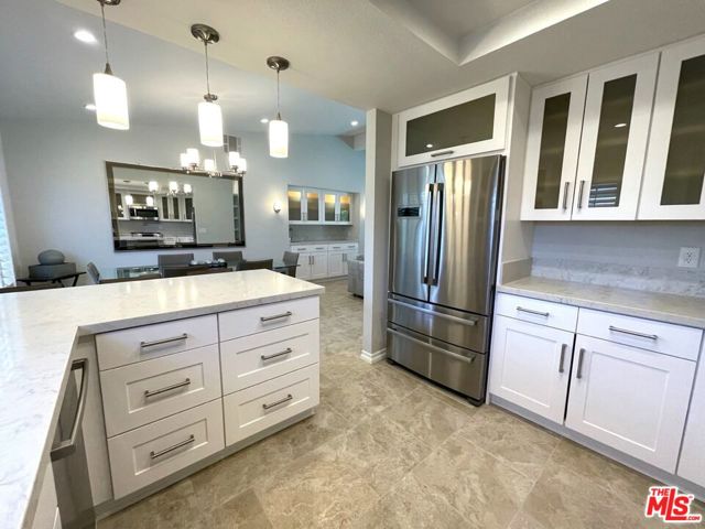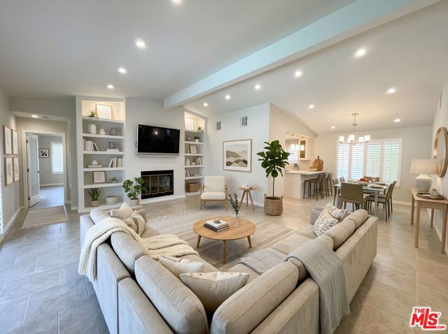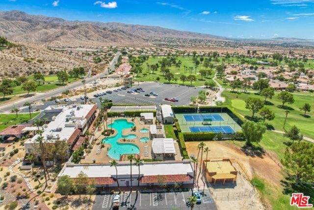 Resort-style living awaits in this beautifully upgraded single-story home, ideally situated on a prime CORNER LOT in Mission Lakes Country Club with MOUNTAIN VIEWS and close proximity to the GOLF COURSE. Just minutes from the clubhouse and a short drive to Palm Springs, this residence offers a seamless blend of luxury, comfort, and convenience. The open, airy floor plan features vaulted ceilings, a stylish built-in bar, and effortless flow into a sleek kitchen with stainless steel appliances, perfect for everyday living and entertaining. The spacious primary suite is filled with natural light and includes two walk-in closets and a luxurious en-suite bath. The spa-inspired bathroom showcases an expansive steam shower with three shower heads, including rain, wall, and hand-held options, along with dual seating for added comfort. A large double vanity with generous storage and elegant Carrara marble countertops completes the space. Two additional bedrooms provide flexibility and comfort, while the secondary bath features a Jacuzzi tub for relaxing. Outside, enjoy a private desert retreat with a sparkling pool, Jacuzzi, mature lemon trees, and peaceful mountain and golf course surroundings. Community amenities include golf, dining, fitness center, pools, spa, and guest hotel. Fireplace is decorative only.