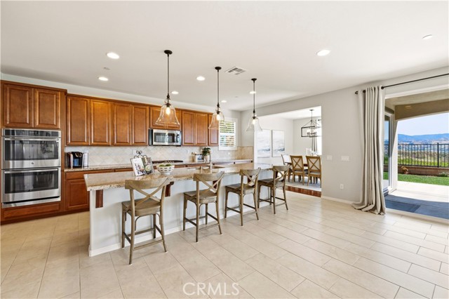 The expansive open floor plan flows effortlessly from the great room to the outdoors. A chef’s kitchen serves as the centerpiece, featuring an oversized eat-in island, walk in pantry and a seamless transition to the family room’s cozy fireplace and separate dining area.