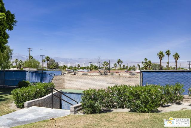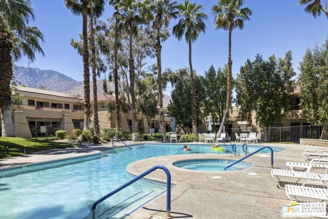 Wonderful RARE 1 bedroom, 1 bath end unit condo-no one above this unit! Pool and laundry facilities are nearby. HOA is on-site. Palm Springs Villas II is GATED and the grounds are pristine and park like with lots of mature trees. Magnificent views of Mt. San Jacinto just outside the front door. Very convenient to Palm Springs and the I-10.