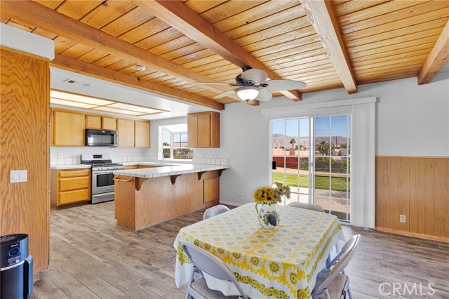 Welcome home to this well maintained 3-bedroom, 2-bathroom residence offering 1,428 square feet of comfortable living space and a 2-car garage. From the moment you arrive, the lush green landscaping in both the front and backyard, complete with a garden and fruit trees, creates a warm and inviting first impression. Step inside to discover a bright, fresh interior featuring durable hard-surface flooring throughout—perfect for both everyday living and entertaining. The dining area showcases a wood-lined ceiling, adding a touch of character and charm you won’t find just anywhere. In the family room, a cozy gas fireplace sets the perfect ambiance for relaxing evenings at home. Whether you’re enjoying a peaceful spring afternoon or a warm summer evening, the backyard offers the ideal setting to unwind on the grass while taking in breathtaking desert sunrises and sunsets. Move-in ready and full of charm, this home is the perfect place to settle in, make memories, and truly make it your own.