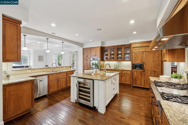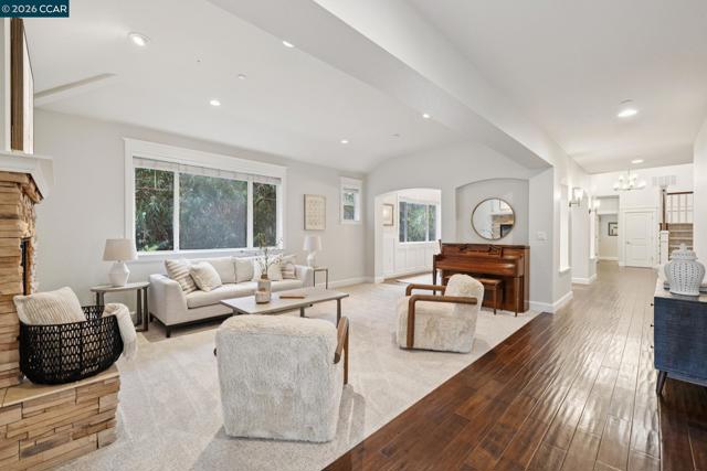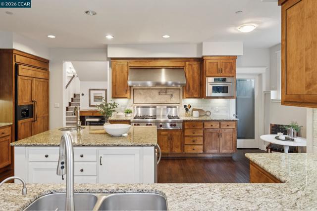 Gracefully blending classic Craftsman architecture with modern luxury, this stunning 5-bedroom home is nestled on a picturesque half-acre in Walnut Creek’s sought-after Tice Valley neighborhood, just minutes from vibrant downtown. New in 2008 with exceptional craftsmanship and timeless finishes, the residence showcases rich hardwood floors throughout the main level, soaring ceilings, and beautiful millwork that create a warm yet sophisticated ambiance. The gourmet kitchen is a true showpiece, featuring stylish alder cabinetry, granite counters, premium Wolf and Sub-Zero appliances, a center island, and a generous breakfast bar—all seamlessly connected to the inviting family room for effortless everyday living and entertaining. Upstairs, very large secondary bedrooms offer comfort and flexibility, enhanced by newer plush carpeting, while the serene primary suite provides a luxurious retreat. Recently painted in neutral designer tones, the home feels fresh, light-filled, and move-in ready. Expansive grounds provide wonderful outdoor enjoyment and privacy, completing this exceptional offering in one of Walnut Creek’s most charming settings