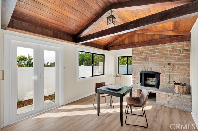 Welcome to this beautifully upgraded home located in a desirable Pasadena neighborhood! This stunning 2-bedroom, 2-bath residence offers approximately 1,682 sq ft of thoughtfully designed living space. Perched on an elevated lot, the home captures lovely views and features a garage rooftop balcony; perfect for relaxing or entertaining. Inside, you’ll find a bright and open floor plan with large glass windows that fills the living room with natural light, along with a cozy fireplace that adds warmth and charm. The upgraded kitchen seamlessly opens to the dining and living areas, showcasing crisp white countertops, light brown wood flooring, and elegant gold cabinet finishes for a modern yet inviting feel. A separate den with beautiful wood beam ceilings and its own fireplace provides additional flexible living space. The spacious primary suite is a true retreat, complete with a large soaking tub, walk-in shower, and ample comfort. Additional highlights include indoor laundry, a 2-car garage, and well maintained landscaped front and backyard areas. Located in a sought after neighborhood with sidewalks and access to a highly regarded school district, this home offers both comfort and convenience in one of Pasadena’s most desirable areas.