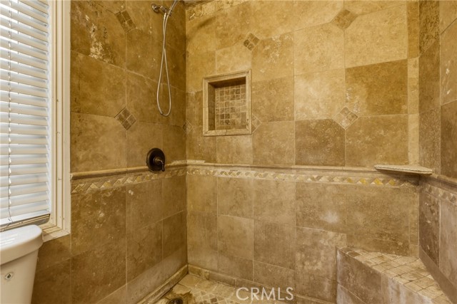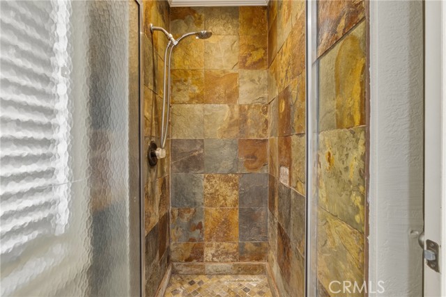 Down the hallway, you’ll find well-appointed bedrooms, including a generously sized primary suite complete with a walk-in closet. Both bathrooms have been upgraded with beautiful stone tile showers and flooring, adding a touch of luxury.