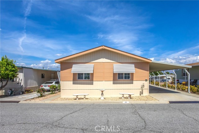 NEWLY REFRESHED and move in ready. This home in an all age park features fresh paint, new flooring and appliances. From the welcoming front porch a double door entry opens into the open floor plan that allows you to structure your space as needed. The spacious kitchen maintains the heart of the home, with a new refrigerator, center island, and large pantry. The Main Suite is located on the North end of the home, and two remaining bedrooms are found on the South side, adjacent to the guest bath. Inside laundry room includes Washer, Dryer, and storage. You'll find ample storage throughout, and a large shed for all the extras. Enjoy beautiful mountain views to the North, beyond the adjacent greenbelt. Enhanced parking simplifies carport space for two vehicles. Located in close proximity to Loma Linda Hospital and Medical Centers, as well as the VA Medical Center. University Mobile Estates offers community pool, spa, game room, community room, dog park, and dedicated car wash bay. It's time to move, you've just found your new home!