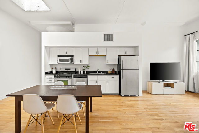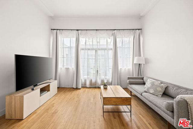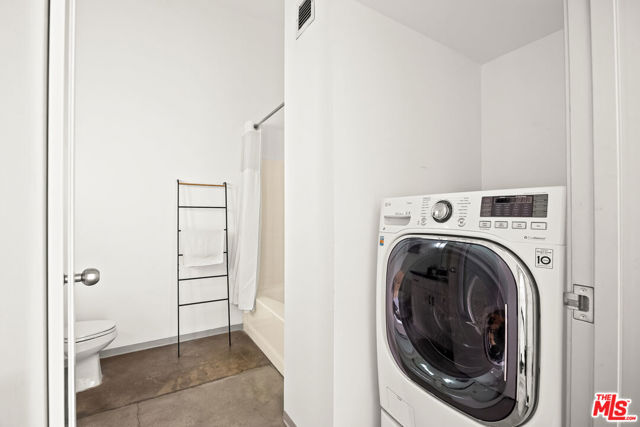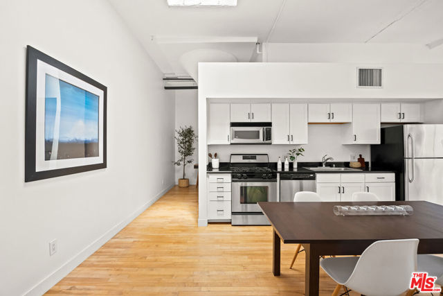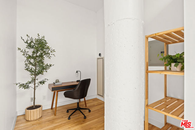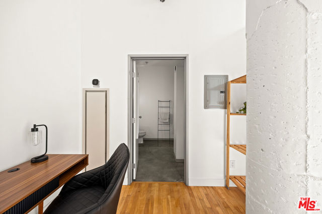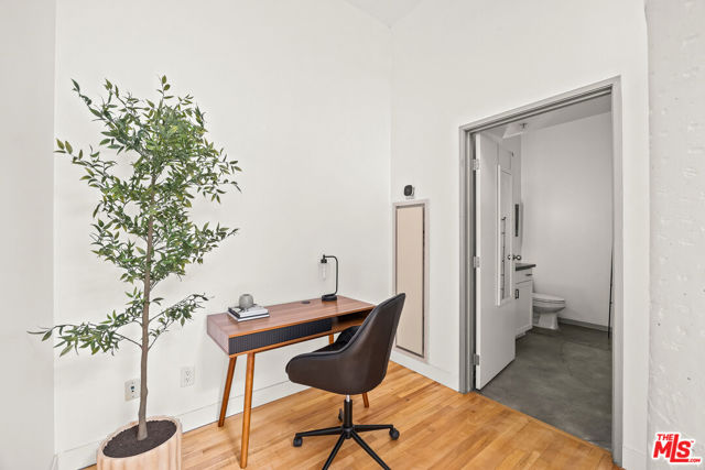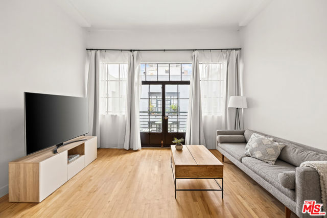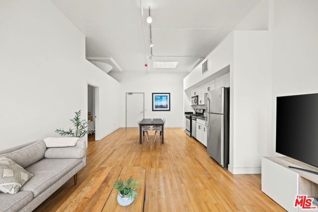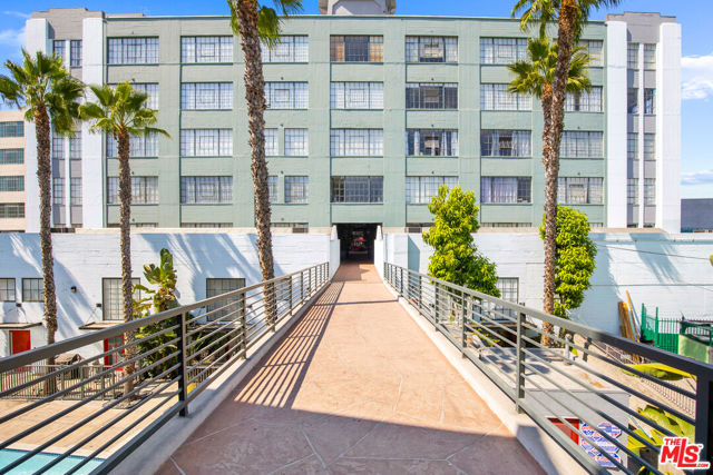 Welcome to a light drenched top floor loft at the Little Tokyo Lofts. The loft features architectural elements such as a semi-open floor plan with original oversized steel casement windows, tall gallery walls, hardwood floors, 12 ft. ceilings, exposed beams and original columns. The living room and kitchen render an open floor plan balancing style and functionality. The kitchen is fully equipped with stainless steel appliances and white kitchen cabinets. A step out balcony with double French doors offering charm, airy and romantic vibes that seamlessly blends indoor comfort with outdoor air. Unique to the building, this is the only loft with a skylight. The bedroom is spacious and semi-enclosed providing privacy. In addition, the floor plan renders a generous nook that can be used as an office space or for storage. The bathroom features a large soaking tub and a washer/dryer combo. 1 parking space on title with an EV charging station. In addition, rare for Downtown Los Angeles, there are 25 guest parking spaces. Relax,reset or entertain with resort-like grounds and amenities: 24/7 security, an open-air lounge/courtyard, a heated pool, hot tub, barbecue area, fitness room and dog run. Adjacent to Little Tokyo - which is now 1-of-3 remaining historic Japantowns left in the nation. Bordered by the Arts District, an eclectic neighborhood with a diverse range of Michelin star restaurants, concept coffee shops, breweries and world class museums. Near public transportation and easy access to freeways. The Little Tokyo Lofts is a six-story condominium building. The building stands as a testament to the industrial history of Downtown Los Angeles. Originally constructed in 1922 as the Westinghouse Electric Company, the trademark historic Art Deco building was transformed into residential lofts in 2006, offering a blend of historic charm and modern living.The HOA monthly fee covers water, trash, 24/7 security and maintenance of the common areas.