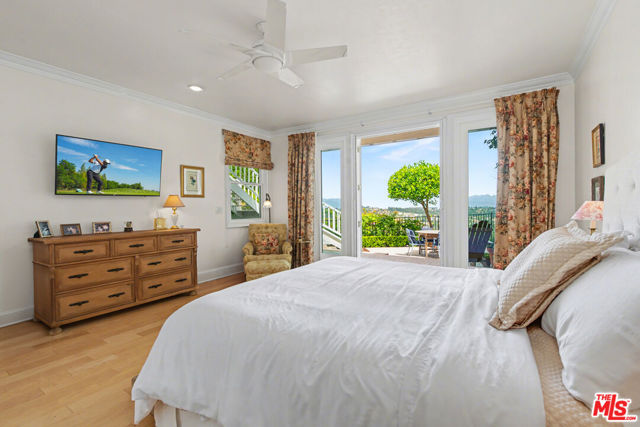 24-hour guard-gated security, a premiere golf course location and breathtaking 180' views set the stage for this exceptional Mountaingate townhome in Brentwood. Overlooking lush green fairways, sparkling city lights, and majestic mountain vistas, this apprx 2,750 sqft residence featuring 2 BR, 2.50 BA + DEN offers one of the most desirable and quiet locations in the community. Privately sited on a cul-de-sac, this rare offering combines charm, great scale and abundant natural light. Bright and inviting, the warm dramatic interior is enhanced with soaring double-height ceilings, crown moldings, custom bookcases, built-ins, and rich wood floors throughout. Lovingly maintained, impeccable move-in condition with new French doors, new windows, and numerous updates throughout. An expansive living room provides the perfect setting for both relaxed living and entertaining, while the formal dining room accommodates large gatherings with ease and flexibility. The well-designed remodeled chef's kitchen overlooks scenic views and features top-grade appliances, generous storage, ample prep space, high ceilings, and a sunlit breakfast area. A very spacious den overlooks treetops and offers versatility as a home office, comfortable TV room, or potential third bedroom. The garden-side primary suite is a peaceful retreat opening to the backyard and includes a luxurious remodeled bath w/heated floors and ample closet spaces. An oversized secondary suite also opens directly to the yard. Enjoy al fresco dining and relaxation from your private veranda overlooking forever views and enjoy the low-maintenance backyard with its pretty gardens and patio spaces, all set against a backdrop of sweeping views creating seamless indoor-outdoor living. Mountaingate is well-known for its on-site 24HR Security with hourly roving patrol, beautifully maintained grounds, and access to scenic hiking trails in the Santa Monica Mountains. The Vista Townhomes, an intimate enclave of just 19 residences offer a rare combination of privacy and resort-style living. HOA dues include exterior fire and earthquake insurance, roof coverage, exterior paint maintenance, community pool and spa, a dog park, trash-can services, and lush, meticulously maintained landscaping creating a setting that truly lives like a private resort. The esteemed Mountaingate Country Club offers optional golf, tennis, and social memberships, plus a fabulous restaurant and gym for members. Ideally located near Brentwood's premier dining and shopping, with convenient access to the 405 freeway and close proximity to LAX, UCLA and USC. An extraordinary Westside value, offering a rare combination of security, scale, views, and amenities - the ambiance is nothing short of breathtaking! Please see agent for dog breed restrictions. The Den has potential to be converted to a 3rd bedroom. Easy to show - Call today and don't delay!