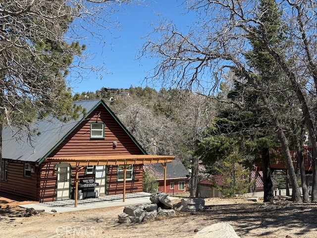 Great location in Green Valley Lake, with a spacious, level 15,000 square foot lot, offering both privacy and room to relax in a peaceful natural setting. Charming cabin offers the perfect blend of rustic warmth and modern comfort with updated kitchen and appliances. Inside, the open floor plan is filled with natural light and centered around a classic wood burning fireplace, adding warmth and ambiance to the main living area-perfect for cozy mountain evenings. The main-level master bedroom provides convenience and ease of living, While upstairs you will find 3 more bedrooms and a half bath offering plenty of space for family and guest. Step outside to enjoy multiple wooden decks and a covered patio. Whether hosting gatherings on warm summer nights or enjoying quiet mornings in the fresh mountain air, this outdoor space is designed to be enjoyed year-round. Property is large enough for RV and boat storage along with a circular unpaved driveway for multiple vehicles.