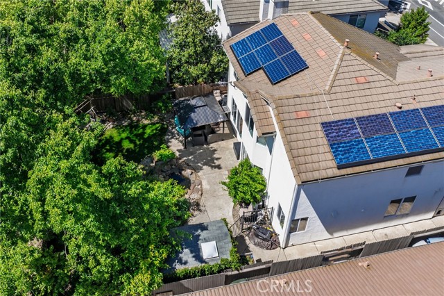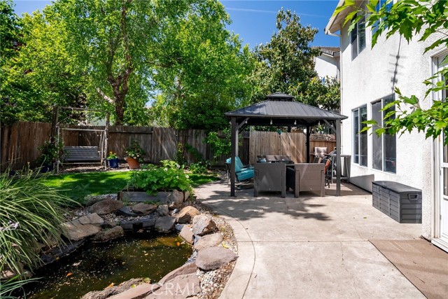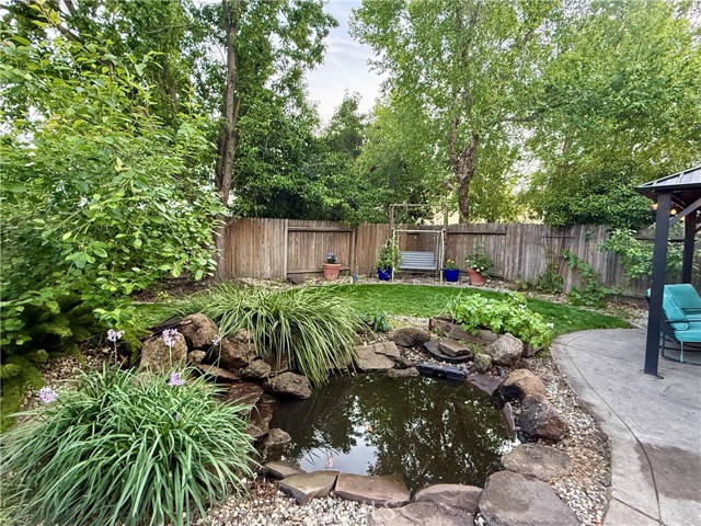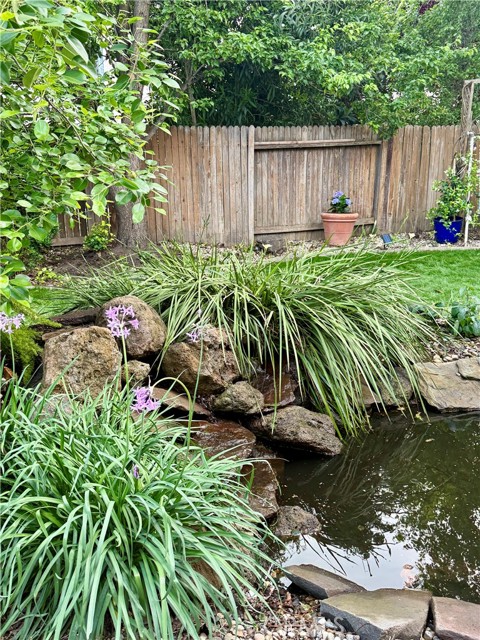 Outdoor living excels in a private, landscaped backyard oasis with a tranquil waterfall pond, mature fruit trees, grapevines, and a freshly renovated lawn. Practical amenities include a storage shed and fenced dog run. The garage is a workshop enthusiast’s dream, equipped with a built-in workbench, large storage closets, overhead ceiling racks, and extensive shelving for superior organization. EV charging station a plus!