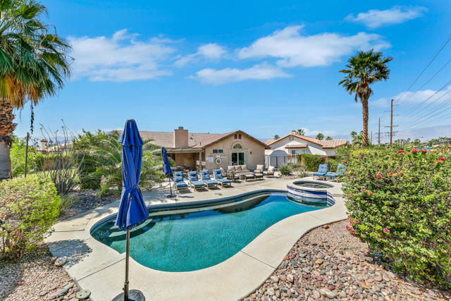 Welcome to your perfect desert retreat in highly sought-after North La Quinta! This spacious 4-bedroom, 2-bath home sits on a large lot at the end of a quiet cul-de-sac, offering privacy, comfort, and an expansive lot to grow.Step inside to find a bright, open layout designed for both everyday living and entertaining. The home features an additional fifth bedroom (unpermitted), ideal for a home office, guest space, or flex room to suit your needs. No Hoa!Outdoors, enjoy your own private oasis with a sparkling pool and an expansive backyard--perfect for hosting gatherings, relaxing under the desert sky, or creating your dream outdoor living space. The beautifully landscaped front and back yards add charm and curb appeal, while the oversized lot provides endless possibilities.Conveniently located just minutes from La Quinta High School and close to Highway 111, you'll have easy access to shopping, dining, and all that the desert has to offer.Whether you're looking for a full-time residence, vacation home, or investment opportunity, this property combines location, space, and lifestyle in one incredible package. Don't miss out on this opportunity!