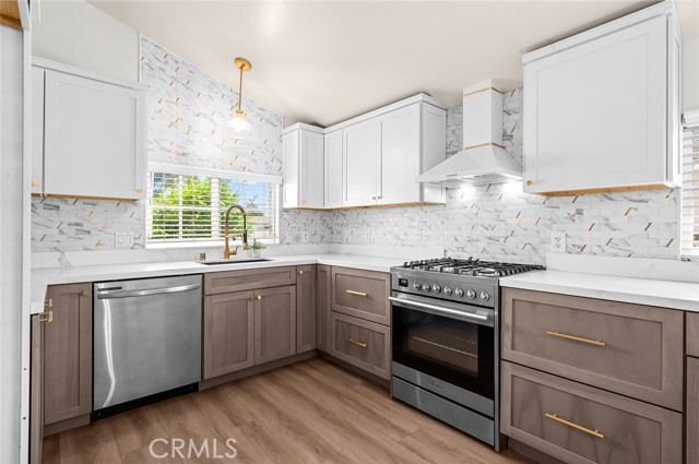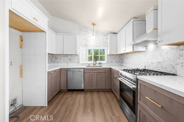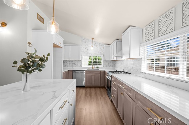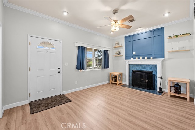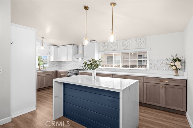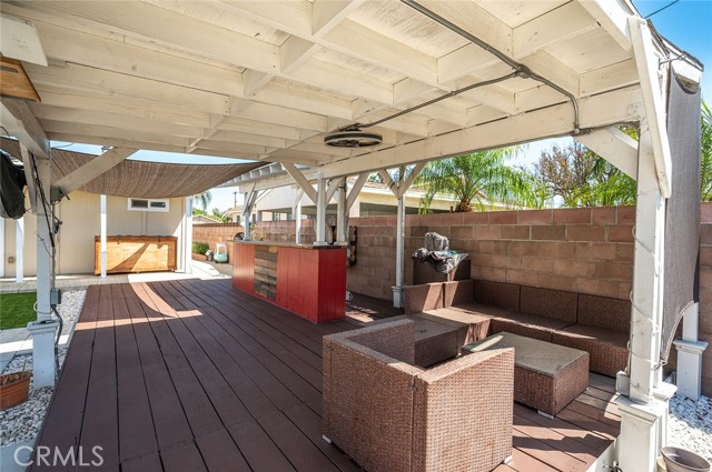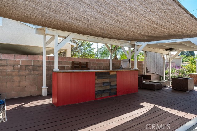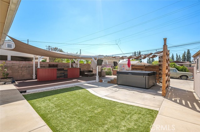 Charming single story Victorian style 4 Bedroom, 2 Bathroom home with lots of upgrades. The interior has been completely remodeled with newer double-pane windows, flooring, paint and newly remodeled kitchen. The kitchen features include beautiful new cabinetry with gold hardware and white quartz countertops, stainless steel appliances, and a kitchen island with waterfall quartz. There is a dining area off of the kitchen with custom gold light fixtures. The living room features a beautiful fireplace with custom wood paneling and electrical outlet for your television. All 4 bedrooms are spacious with recessed lighting and ceiling fans. There is also a den area that could be used as an office/family room or it could be closed off to create a mother in law suite as there is a bedroom and bathroom off of the den area. Inside laundry room with custom shelving. Plumbing and electrical has been updated. Buyer to assume solar panel lease. Central A/C and heat with whole house fan. Large back yard with RV access potential. The back yard features include custom large wood bar and patio area, bbq area, and an above-ground spa included. Back yard also has two very large storage sheds, one is for storage and one is being used as a workshop with work bench Do not miss out!