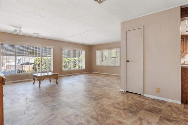 Private corner lot at the end of a cul-de-sac in a desirable 55+ resident-owned (land-owned) community—qualifies for VA & Fannie Mae financing. Tucked-away location offers exceptional privacy. Covered side porch with no neighboring home beside it—ideal for relaxing or entertaining. Yard features multiple fruit trees including lemon, orange, fig, persimmon, and peach. Spacious 3-section floor plan with separate living & family rooms—flexible space for office or hobbies. Interior features include drywall and 2 skylights for natural light. Primary suite offers walk-in closet, dual sinks, soaking tub & separate step-in shower. Seller notes newer roof & A/C (buyer to verify). Home needs some cosmetic updates and is priced accordingly—great opportunity to add your personal touch. Near guest parking. Low HOA approx. $272/month includes water, trash, cable & high-speed Spectrum internet. Furniture can be included if you wish!