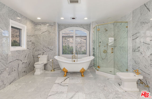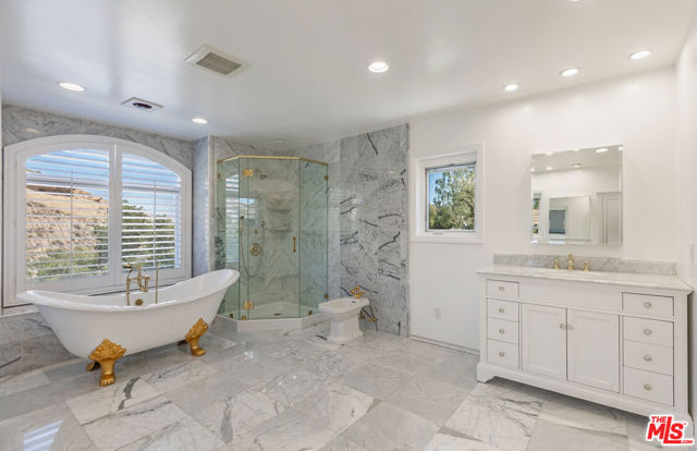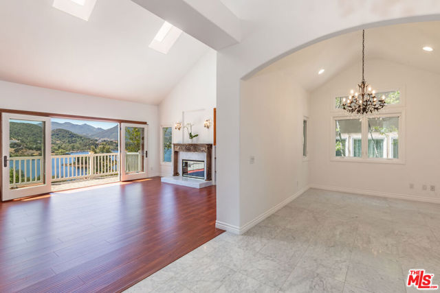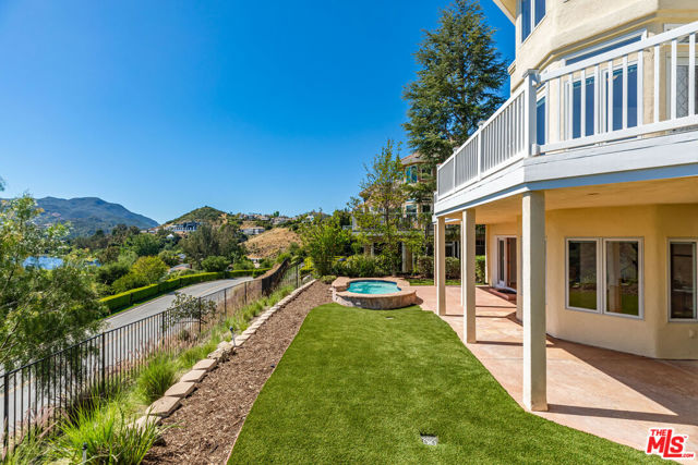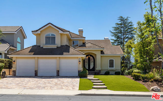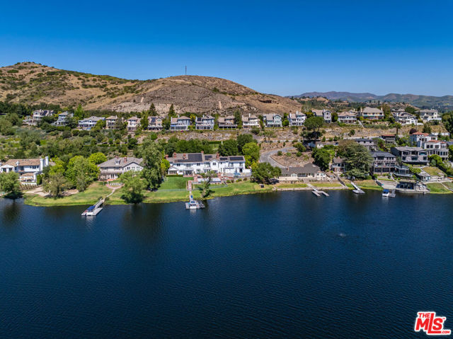 Stunning panoramic views of Lake Sherwood and the surrounding mountains from this beautifully updated home in the prestigious gated North Shore neighborhood of Sherwood. Recently refreshed with new landscaping! South-facing views from every level, vaulted ceilings, and abundant natural light from skylights. Features include flagstone driveway and walkway, dual-paned Pella windows, premium appliances, custom arched glass and wrought iron doors, marble floors in entry/kitchen/dining, and French doors. The floor plan offers 4 bedrooms, 3.5 baths, home office, open living/kitchen, formal dining, upstairs primary suite, and downstairs bedrooms plus family roomall with views. Highlights: 3-car garage and main-floor laundry with sink. The primary suite has coffered ceilings, sitting area with views, large walk-in closet, and remodeled bath with dual sinks, separate tub, marble shower, bidet, and marble finishes.Backyard features an oversized refreshed spa, new grass, and covered patio. Main-floor laundry with original downstairs setup for guests. Ownership includes lake privileges, security patrols, and private fishing on Lake Sherwood.A must-see for incredible views in an exclusive neighborhood!
