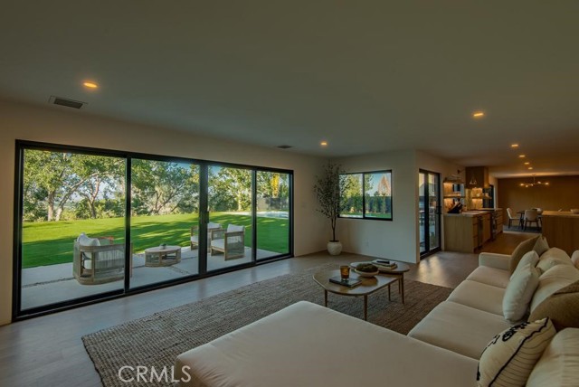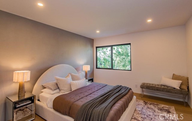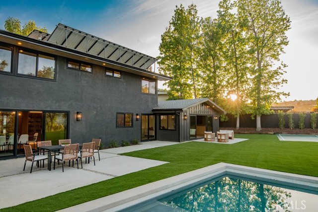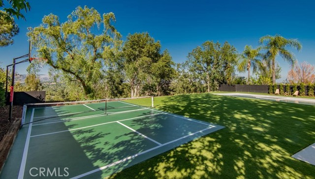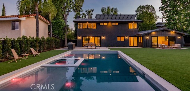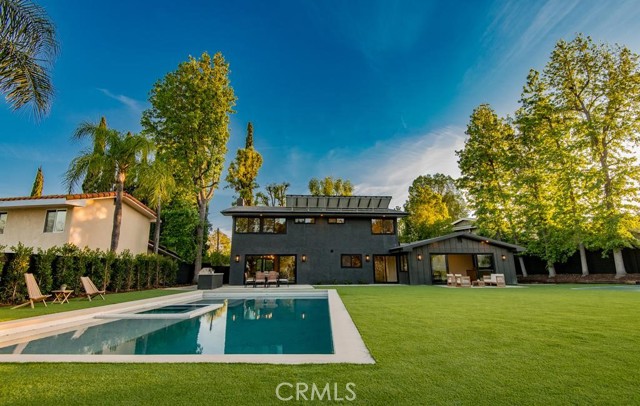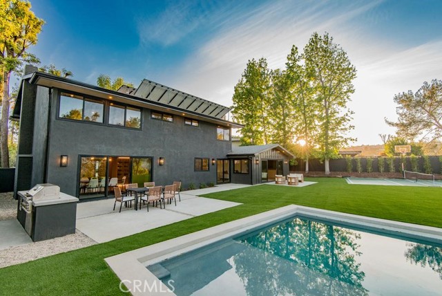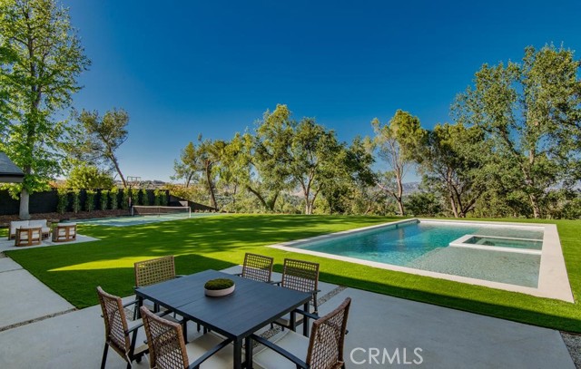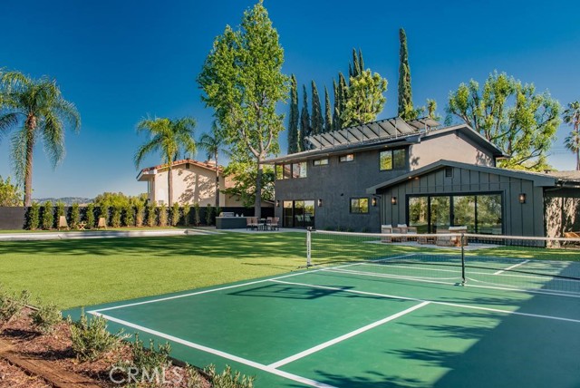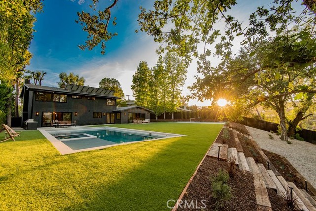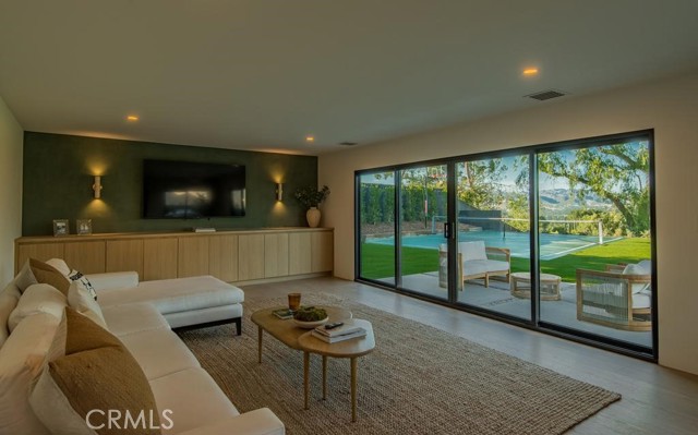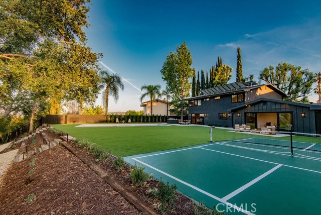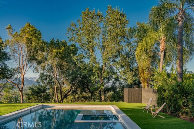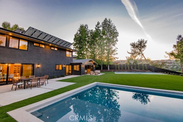 Views , Views , Views … Located West of Valley Circle situated on an extremely Huge Lot with Full wrap around City & Mountain Views !! This Completely Reimagined iconic 2 Story mid-century Modern home, timeless architectural Design with modern volume, warmth, and functionality ! 5 bedroom, 4 bath boasting 3527 sqft residence honors the original spirit of the Woodland Hills west design while elevating it for contemporary living. The homes layout has been redesigned to introduce an Open floor plan living room / Great room Dining room , kitchen creating an expansive sense of scale and light rarely found in homes of this era. true indoor-outdoor living allowing the interior spaces to flow effortlessly into the landscape. Throughout the home, custom oak cabinetry has been meticulously designed and built in every space, offering warmth, cohesion, and exceptional storage without compromising clean architectural lines. The dining room flows seamlessly with the Living room and kitchen making it ideal for entertaining. The Massive kitchen is both sculptural and functional, featuring Forno appliances, natural Porcelain countertops, and a Custom 10ft Kitchen island that serves as the heart of the home. The residence offers true primary suite thoughtfully positioned with Full city and Mountain View’s , 4 bedrooms on the Second level with the 5th bedroom “ in-law suite” on the main level of the home to provide privacy and flexibility perfect for guests, in-laws, or work-from-home needs. Outside the property sits on 16,700 Lot size continues to impress with an impressive Modern Linear 40ft Lap pool and spa with 2 Baha”s great for kids or pool lounge seating and umbrellas. An outdoor Builtin BBQ Entertainment area, and multiple zones designed for relaxation and entertaining. A Full / Pickle ball, Basketball Sport court leading to a lower level of the backyard pebbled fire pit area with plenty of seating area the sets the tone for gatherings both intimate and lively along with a 3 hole putting green. Every system in the home has been updated as this is a fully reimagined residence, offering the confidence of new construction with the soul of a mid-century classic. A rare opportunity to own a true architectural masterpiece rooted in history, redefined for modern life, and perfectly suited for the Woodland Hills West lifestyle.