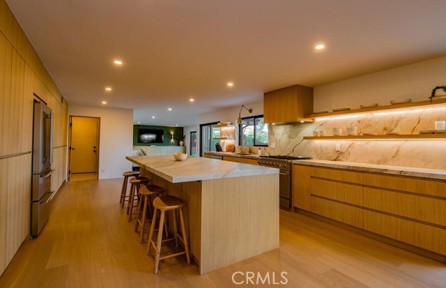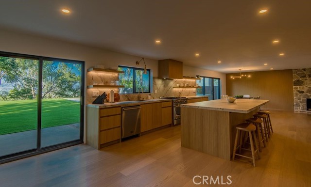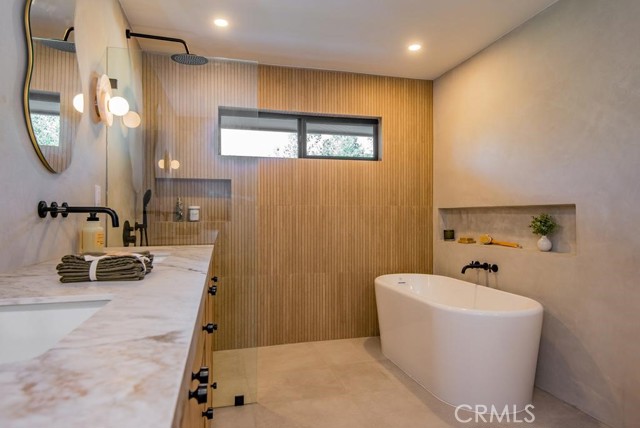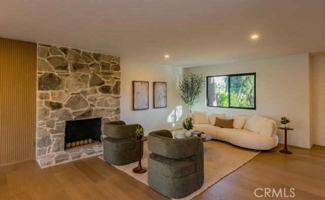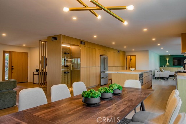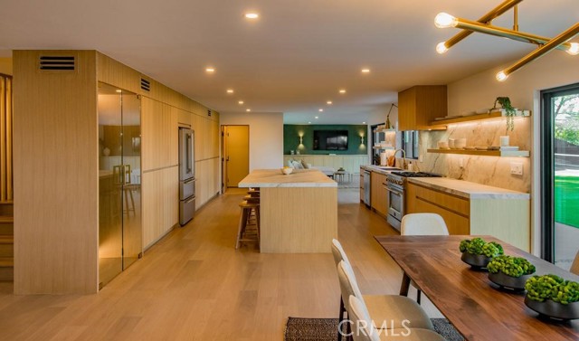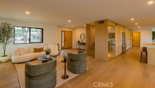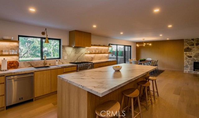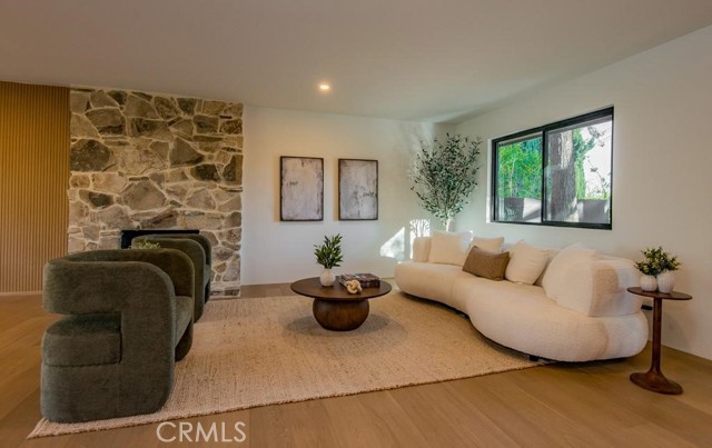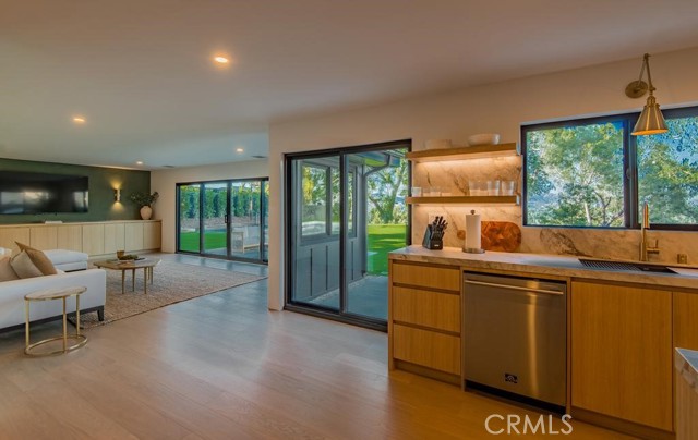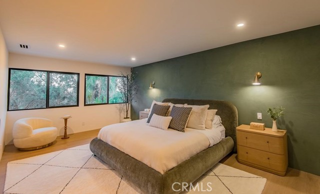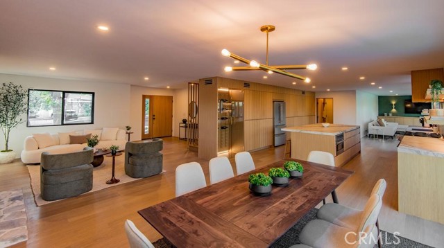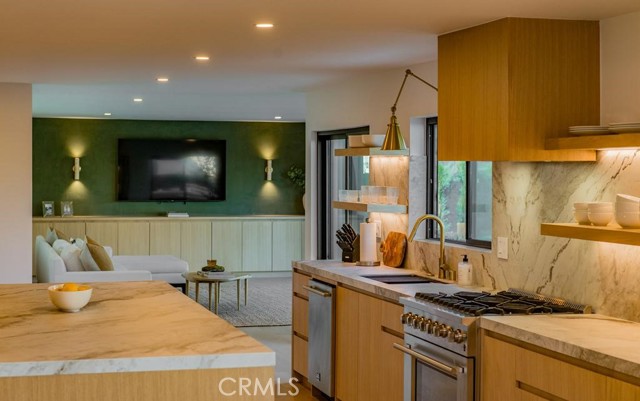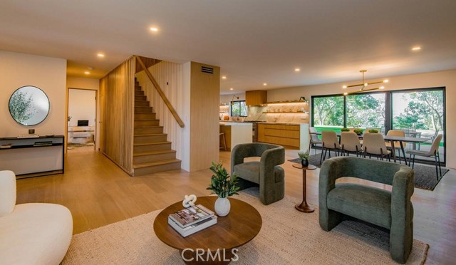Views , Views , Views … Located West of Valley Circle situated on an extremely Huge Lot with Full wrap around City & Mountain Views !! This Completely Reimagined iconic 2 Story mid-century Modern home, timeless architectural Design with modern volume, warmth, and functionality ! 5 bedroom, 4 bath boasting 3527 sqft residence honors the original spirit of the Woodland Hills west design while elevating it for contemporary living. The homes layout has been redesigned to introduce an Open floor plan living room / Great room Dining room , kitchen creating an expansive sense of scale and light rarely found in homes of this era. true indoor-outdoor living allowing the interior spaces to flow effortlessly into the landscape. Throughout the home, custom oak cabinetry has been meticulously designed and built in every space, offering warmth, cohesion, and exceptional storage without compromising clean architectural lines. The dining room flows seamlessly with the Living room and kitchen making it ideal for entertaining. The Massive kitchen is both sculptural and functional, featuring Forno appliances, natural Porcelain countertops, and a Custom 10ft Kitchen island that serves as the heart of the home. The residence offers true primary suite thoughtfully positioned with Full city and Mountain View’s , 4 bedrooms on the Second level with the 5th bedroom “ in-law suite” on the main level of the home to provide privacy and flexibility perfect for guests, in-laws, or work-from-home needs. Outside the property sits on 16,700 Lot size continues to impress with an impressive Modern Linear 40ft Lap pool and spa with 2 Baha”s great for kids or pool lounge seating and umbrellas. An outdoor Builtin BBQ Entertainment area, and multiple zones designed for relaxation and entertaining. A Full / Pickle ball, Basketball Sport court leading to a lower level of the backyard pebbled fire pit area with plenty of seating area the sets the tone for gatherings both intimate and lively along with a 3 hole putting green. Every system in the home has been updated as this is a fully reimagined residence, offering the confidence of new construction with the soul of a mid-century classic. A rare opportunity to own a true architectural masterpiece rooted in history, redefined for modern life, and perfectly suited for the Woodland Hills West lifestyle.