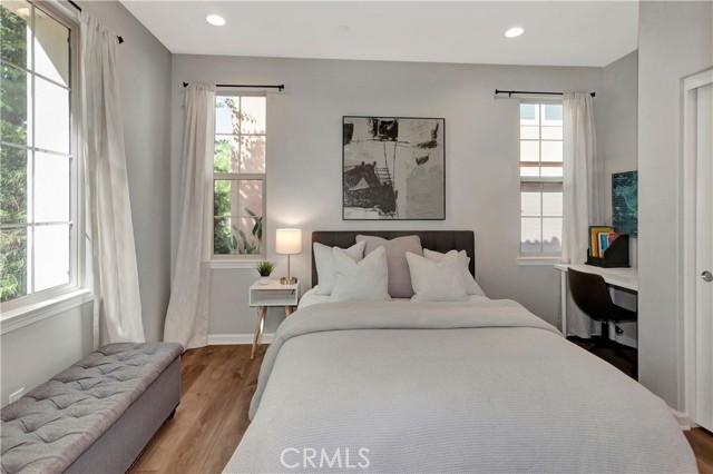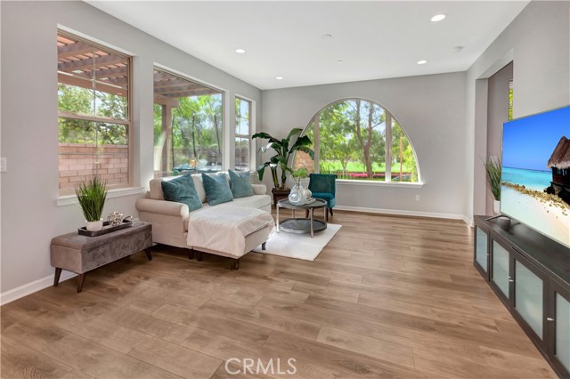 Welcome to the amazing community of Baker Ranch! You will absolutely fall in love with the incredible amount of natural light that this beautiful 4 bedroom, 4 full bathroom stunning home has to offer. The home sits directly across from The Oaks Park and Tennis Courts so you and your guests will enjoy beautiful sunsets right from the comfort of your living room! The formal entry sports 21 foot ceilings and two stories of windows. You will love the upgraded elegant stair rail system. There is a full bed and bath (with a walk-in shower) downstairs for guests, elderly family, or it can be used as an office. And each upstairs bedroom has its own ensuite bathroom for privacy. There is LED lighting throughout, along with incredibly durable large plank wood floors and upgraded tile flooring. The entire home has been painted with designer paints. The highly desirable open floor plan features a magnificent gourmet kitchen with many upgrades. The dual toned shaker style white kitchen cabinetry and darker island with white quartz counters is timeless, classy, and stylish. Adding to the elegance of the downstairs, is the glass subway tile backsplash. All the secondary bathroom counters have been upgraded to quartz for easy maintenance, style, and incredible durability. The spacious primary suite has a generous walk-in shower, considerable walk-in closet, and dual vanities with medicine cabinets, along with the snow white quartz counters and posh tile work. The enclosed low maintenance backyard with overhead trellis is very private, and the surrounding mature trees add to your privacy. Toll Brothers installed a central vacuum system which makes clean up a breeze! And don't forget the epoxy flooring in the garage. The Vista Pool and Park (which hosts many of the Baker Ranch outdoor events) is a quick walk away. The Oaks Park and Tennis Courts are right across the street, along with the entry to the Borrego Trail. Make this elegant home your forever home before its too late! Come and enjoy all the luxury amenities that Baker Ranch has to offer including the 10 parks, 6 heated pools and spa's (including a quiet pool and spa), the mile long hiking and biking trails, fitness stations, basketball, tennis, beach volleyball, and Bocce Ball/ Corn Hole Court, baseball and soccer fields, fire pits, outdoor fireplaces, BBQ's, clubhouses, covered outdoor kitchen, and the Barker Ranch Dog Park!