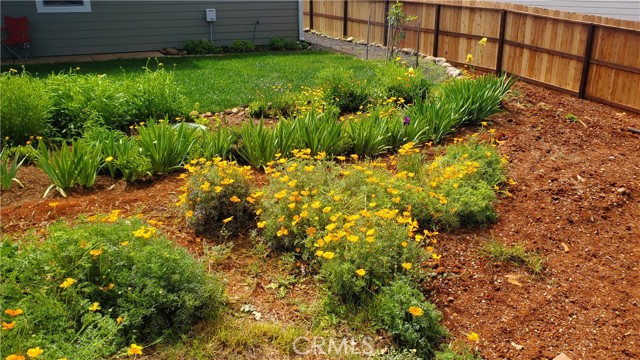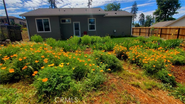 Cute as a button & twice as charming! This meticulously maintained 2 bedroom 2 bath home is situated on a quiet street in beautiful Paradise, CA. With this west side location, you'll enjoy beautiful skies as the sun is setting in the evenings. You're welcomed into the light, bright & open living room area with the kitchen close by & a French door leading to the outside covered patio overlooking the lush green grass with wildflowers and poppies just beyond. Down the hall you'll find a guest bathroom with a shower/tub combo, a large guest bedroom with large window facing the front grassy area. The master bedroom with master bathroom face the beautifully landscaped back yard. The sparkly kitchen features quartz counter tops, tiled backsplash, microwave over a gas stove, dishwasher & refrigerator, too! A lot of love and planning went into the landscaping with many bulbs, flowers, & fruit trees that will be enjoyed for years to come. A security system & cameras are an added bonus to make this a complete, turn key property. If you're looking to downsize or need an investment property to use as a weekend rental, you'll want to take a look at this lovingly cared for beauty!