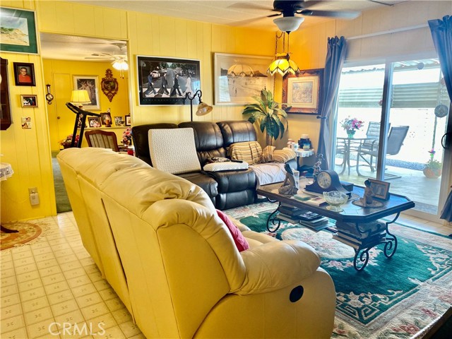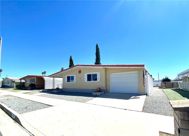 Beautiful 3 bedrooms, 2 baths manufactured home in Sierra Dawn Estates, a 55+ Active Living Community. In this community, YOU OWN THE LAND, NO space rent to pay. LOW PROPERTY TAXES....It is located close to Walmart shopping centre, pharmacies, DMV, restaurants, rehab centres, etc.. As you enter this property, a stylish concrete screen wall in front of the porch will welcome you! This property features carpet and vinyl flooring entirely. A spacious living room takes you into the dining room with built-in china cabinets facing the kitchen. On the other side of the kitchen, the kitchen is also open to the living room, facing the glass sliding door to the outside patio, what a great view!... All appliances, including the cooktop, oven and dishwasher, are in good condition. The laundry area is conveniently located right next to the kitchen. A good-sized master bedroom and a master bathroom with his and hers sinks. For privacy and convenience, the master bedroom is located on the opposite side of the other two bedrooms and the one bath. Outside, two sheds are right next to each other to accommodate extra storage. Much work has been done to this property during the last three years, including double pane windows, the mobile home foundation has been reinforced with 26 pillars for extra support, security bars to almost all windows except the front windows, vinyl fencing, a newer AC Unit, dishwasher, entirely painted on the outside and more. Drought-tolerant landscaping for easy landscaping maintenance. Community offers: Billiard room, shuffleboard courts, 4 clubhouses, swimming pools, jacuzzi spas, RV Parking, clubhouse, gym, recreation room and so forth ... Come and take a look, you will love this gem!!