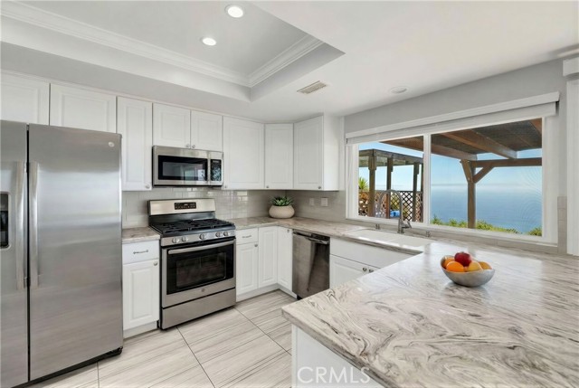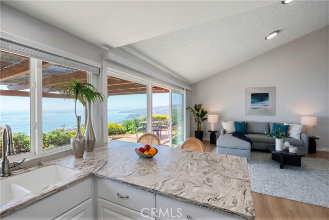 Experience breathtaking 180-degree panoramic ocean views stretching to Catalina Island, overlooking Trump National Golf Club Los Angeles and the rolling hills of Rancho Palos Verdes. From sunrise to sunset, nearly every major living space—including all three bedrooms, the kitchen, family room, and backyard—captures this stunning coastal backdrop.