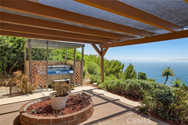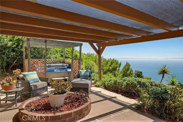 Step outside to a serene, low-maintenance outdoor setting, featuring a pergola-covered patio and private above-ground spa—perfect for relaxing or entertaining while enjoying sweeping ocean and golf course views.