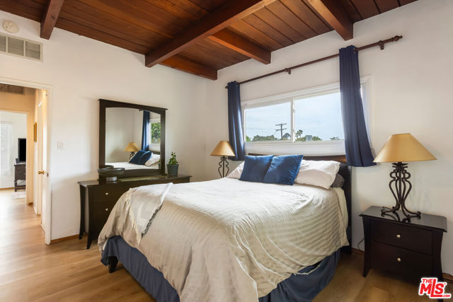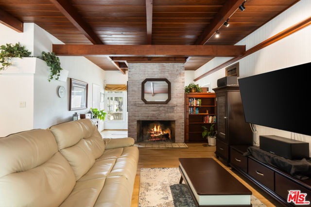 Set above the street on a corner lot, this inviting California ranch blends warmth, character, and effortless indoor-outdoor living. A welcoming front porch leads into a light-filled living space defined by soaring beamed wood ceilings and a statement fireplace, creating both volume and a natural sense of comfort. The home's layout is especially unique, with many rooms offering direct access to the outdoors bringing in abundant natural light and creating a seamless connection to the surrounding yard. Featuring three spacious bedrooms and two updated bathrooms, including a primary suite with a walk-in shower, the home balances functionality with thoughtful upgrades such as new flooring, refreshed kitchen finishes, and fresh interior paint throughout. Outside, multiple usable yard areas unfold, including a pergola-covered space ideal for al fresco dining, along with mature greenery, garden beds, and fruit trees that add both privacy and charm. The elevated positioning enhances curb appeal while offering a greater sense of space. Ideally located near Westchester's dining, local shops, LAX, and convenient freeway access, this home offers a rare combination of character, comfort, and everyday livability.