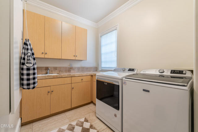 IN-UNIT PRIVATE ELEVATOR AND LAUNDRY ROOM, HIGH CEILINGS, HUGE PRIVATE WRAP-AROUND PATIO WITH RETRACTABLE AWNING AND MORE.Built in 2003, this community has just six units. Unit #5 has been lovingly maintained and features 3-bedrooms and 3-bathrooms spanning approximately 2,801 square-feet. Take the personal elevator from the garage directly into this unit, to any floor.Enter into a formal living room with hardwood floors, tray ceilings, recessed lighting, gas fireplace, windows and French doors that look out to the beautiful patio which is also accessible from the family room. The formal dining room is accented with wainscoting and crown molding. The kitchen boasts plenty of countertop space and cabinets, including a breakfast counter, immaculate 6-burner Thermador range, Sub-Zero refrigerator with ice-maker/freezer, built-in oven and microwave, and a built-in coffee maker.The spacious family room looks out to the private patio through French doors. The first-floor laundry room offers a sink, tile countertops, side-by-side Maytag washer and dryer, cabinet storage, utility closet, and a wall-mount ironing board. A powder room for guests completes the main level.Head upstairs with your private elevator or stairs and find 3 large bedrooms, including a stunning primary suite, complete with a walk-in closet, spa-like bath with dual sink vanities, a walk-in shower, and a separate soaking-tub. Built-in storage cabinets in the hallway, and another full bathroom with tub/shower combo. This corner unit is exceptionally private and very well-maintained.ADDITIONAL FEATURES: tankless water-heater, window shades all throughout, motorized patio door shade, retractable patio awning, two separate HVAC systems for upstairs and downstairs, recessed lighting, video intercom/doorbell by the front door, solar-powered patio lights, patio electrical outlets, outdoor waterfall feature, tall privacy hedges, beautifully maintained landscaping and a fig tree, huge storage room with built-in shelving and foldable work-bench, two assigned side-by-side parking spaces, wall-mounted TVs with in-wall electrical wiring, guest parking in the gated garage.