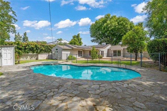 Set on the coveted Sherman Oaks–Van Nuys border, this exceptional single-level ranch estate offers a rare blend of privacy, scale, and resort-style living on an expansive ~¼-acre lot. Tucked into an ultra-quiet neighborhood, the property delivers a serene retreat just moments from the best of the Valley. Designed for both elegant entertaining and everyday comfort, the highly sought-after floor plan features a formal dining room, a warm and inviting eat-in kitchen, and sun-drenched living spaces enhanced by expansive dual-pane windows and multiple sliding glass doors. Natural light pours in from every angle, creating a bright and uplifting ambiance throughout. The heart of the home is a beautifully updated kitchen overlooking a lush, park-like backyard—perfectly framing the indoor-outdoor California lifestyle. Step outside to discover multiple entertainment areas, including a sprawling fenced grounds ideal for hosting, a sparkling oversized pool and spa, and a detached back house offering flexibility for a studio or game room.