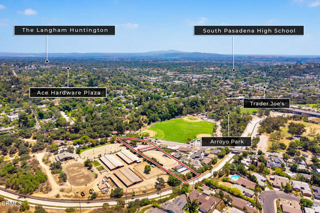 South Pasadena Equestrian Estate|Nearly 1.5 Acres of Premier Horse Property. A rare offering, this gated equestrian estate is a harmonious blend of architectural elegance and exceptional horse facilities, a private sanctuary designed for both refined living and an active equestrian lifestyle. Tucked behind mature trees and manicured hedges, the property offers highly desired seclusion with two gated driveways, multiple outdoor living spaces, and direct access to the scenic Arroyo Seco trails. Whether you're a professional equestrian, avid rider, or simply seeking an unmatched indoor-outdoor lifestyle, this estate delivers it all. At the front of the property is a beautifully designed 2-bed, 2-bath architectural ranch home featuring hardwood floors, vaulted ceilings, and a seamless connection to the outdoors. The spacious primary suite is a true retreat, complete with a mosaic-tiled fireplace, tranquil bath with dual vanities, a custom closet, and an attached office with direct access to both the front deck and side yard. The kitchen is equipped with a farmhouse sink, built-in appliances, a stunning La Cornue range, and a breakfast bar -- all with views of the San Pascual Stables training arena. Adjacent is the cozy dining area with French doors leading to a wraparound deck, perfect for al fresco dining or morning coffee. The inviting living room features a second fireplace with dual built-in glass-faced cabinets and deck access. Equestrian Facilities: World-Class Amenities at Home. Purposefully built for the serious equestrian, the property boasts extensive horse facilities such as an 8-stall barn with spacious stalls, integrated tack room/office, wash/grooming stalls and laundry room, full-size riding arena with ample space for jumping, dressage, or western disciplines, 16 additional outdoor stalls -- ideal for boarding, training, or breeding operations and direct access to the Arroyo Seco trail system -- offering miles of scenic riding paths. Easy trailer access via two gated driveways is perfect for hauling horses or hosting clinics. With its thoughtfully designed layout, the equestrian areas are efficiently organized yet blend organically into the landscape, providing space, comfort, and function while adding to the estate's beauty and serenity. Whether watching horses from the porch, entertaining friends, or enjoying peaceful moments, every inch of the property reflects quiet luxury and lifestyle harmony.