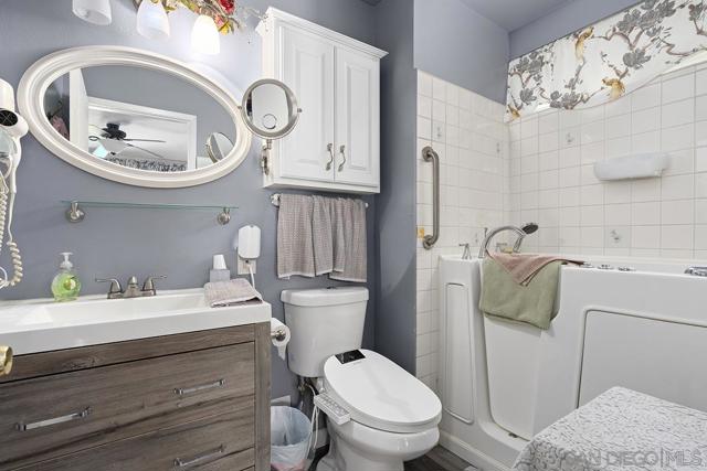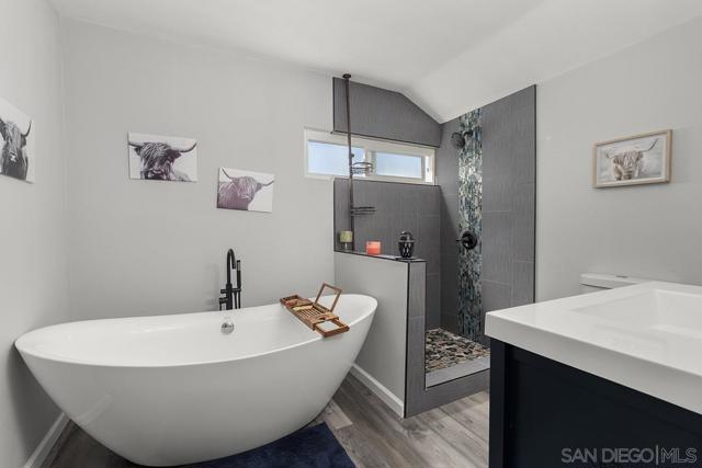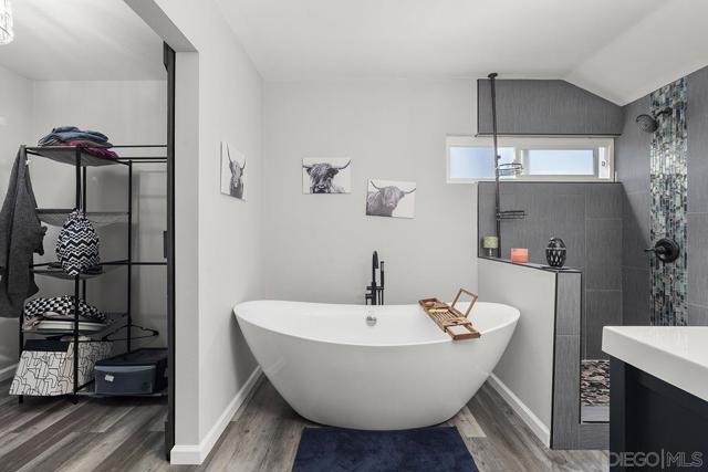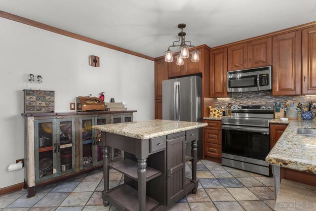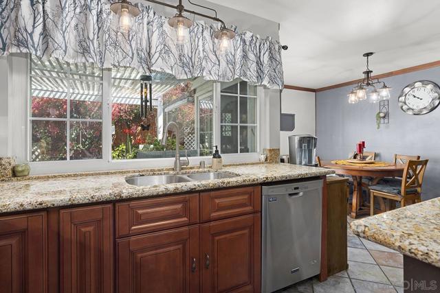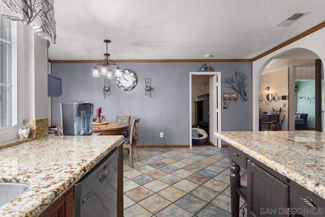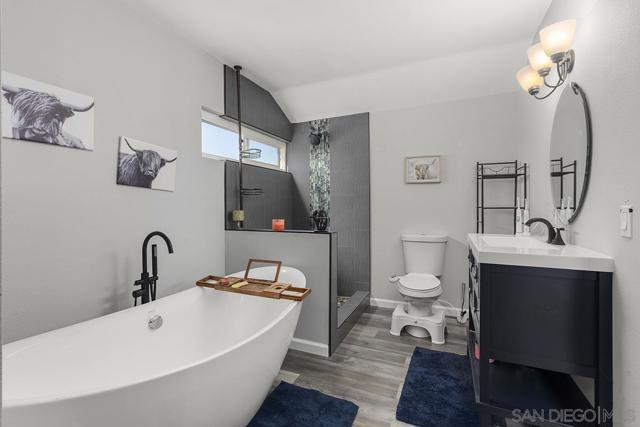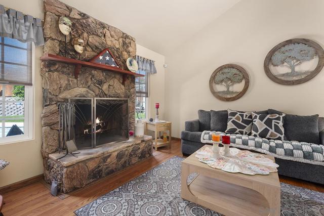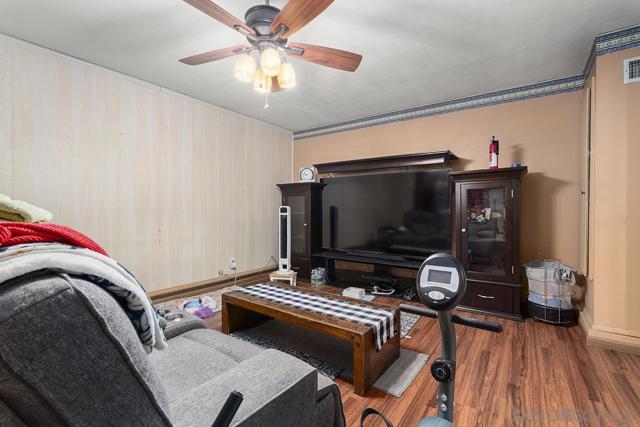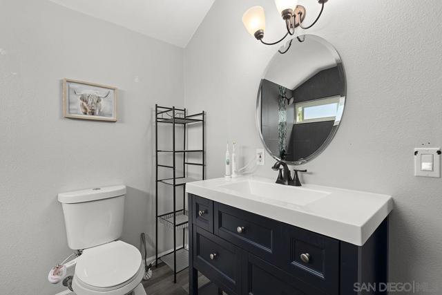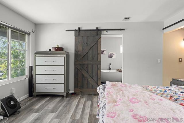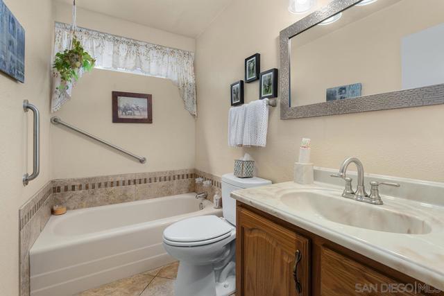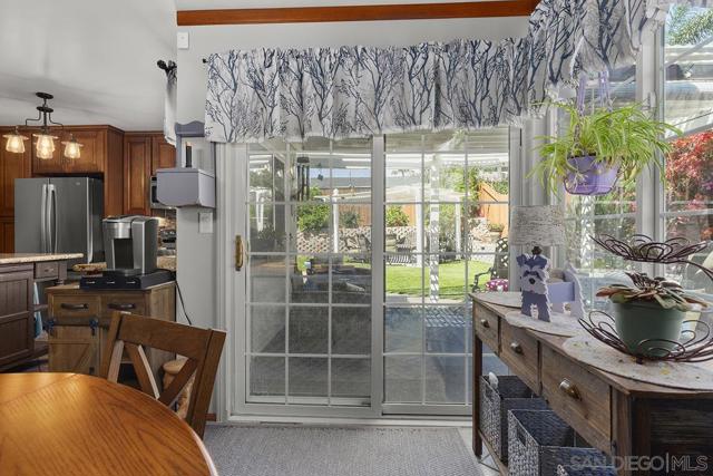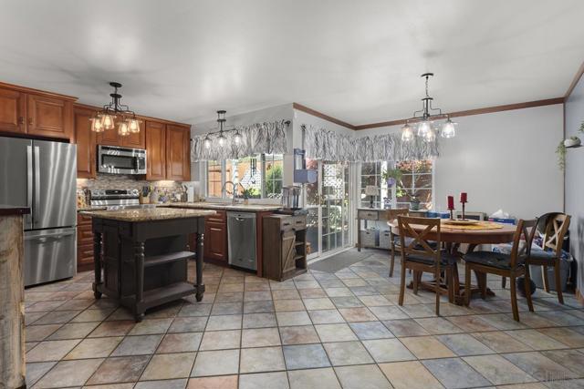 4 bedrooms and a full 3 baths. Quiet street. Move in ready home with a pool and an above ground spa. Two rooms could be primary. One downstairs and one large one upstairs (this was 2 rooms when it was built, now one large mster bedroom, the only room upstairs). Huge vaulted ceilings in the living room give this is grand feel. 49 solar panels and a new solar battery system. see attached. Recent SDGE bill was 23.00. Floor plan is in the pictures. Garage door is still on the front of this garage. Garage is partially converted to a family room. This is the room with the large TV in the pics. This is not permitted. This garage conversion is not part of the square footed listed in MLS. Garage has a few feet deep of storage. New owner could opt to remove one wall and turn this back into a garage.