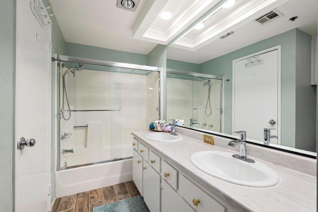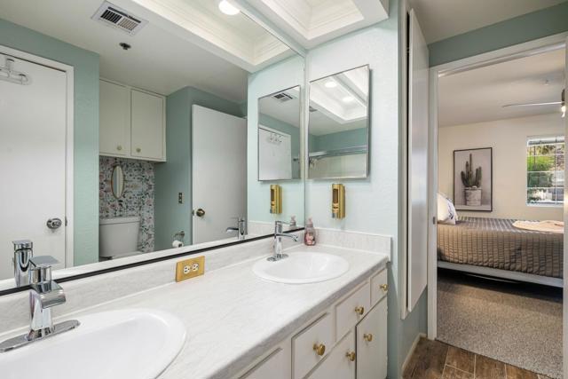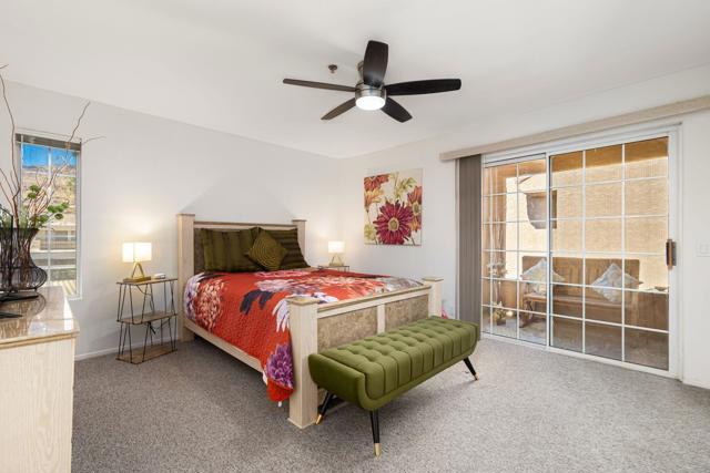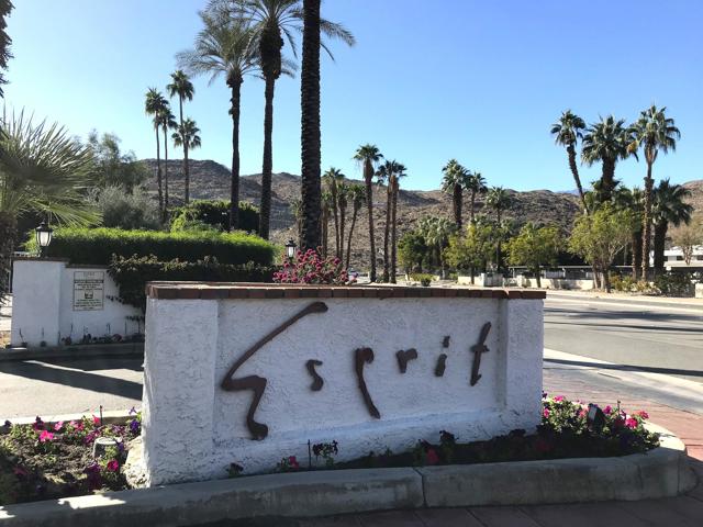 Looking for the ideal South Palm Springs get-away? Look no further. Get ready to enjoy Esprit - a secure gated community. Wonderful location in the complex, second floor end unit with mountain views from the patio and near the main pool area. You will love this fully furnished, upgraded, and immaculately maintained condo. Featuring an open interior and vaulted ceiling, the spacious great room is the perfect place to kick back and relax. Fully equipped kitchen with several eating areas. The bedrooms are separated with mirrored closets, and each offers an en-suite bathroom for added privacy. In-unit stackable washer and dryer, and two peaceful patios, one with a BBQ. The community offers a resort feel with scenic mountain views, lush landscaping, two pools, three spas, two lighted tennis courts, pickle ball, & carport parking. Down the street you will find the Tahquitz Creek public golf course and just a few blocks away is the Target/Trader Joe's shopping center. Popular community for snowbirds and seasonal rentals. Perfect for full-time living, a vacation retreat, or investment property.