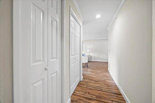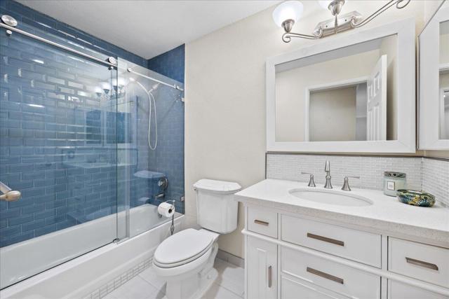 Remodeled 2 bedrooms with 2 bathrooms. Kitchen has newer appliances, white cabinets and solid material countertops, designer tiled back splash. All flooring is laminate that looks like hardwood. Wood burning fireplace, double paned windows, laundry in unit with washer and dryer, coat closet, pantry and extra storage located just down the hallway. New balcony. Primary suite has a large walk in closet, shower stall with white porcelain tile, newer white double sink vanity with designer back splash. The hallway bath has a shower over a tub with newer single sink vanity. Solid wood plantation shutters in both bedrooms. Great location within walking distance to Commodore Park across the street, restaurants, shops, grocery stores, BART within walking distance. Great commute pattern with easy access to hwy 101, 380 and 280. Airport close by and minutes to San Francisco. Centrally located on the Peninsula. This great condo is move in ready.