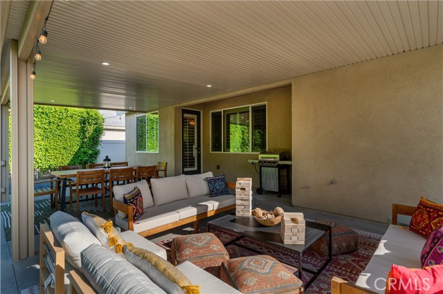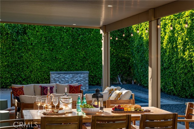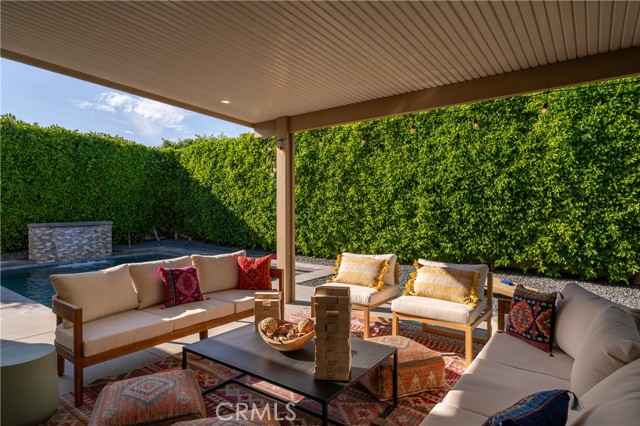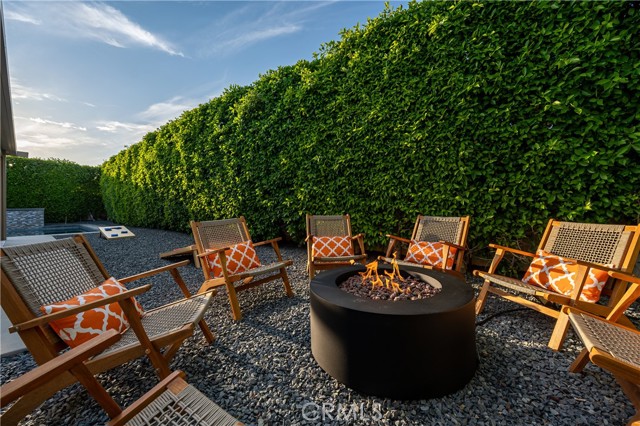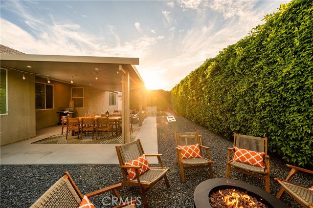 Outdoor living is equally impressive, featuring a covered patio perfect for dining and relaxation, along with a dedicated fire pit area designed for unforgettable desert evenings.