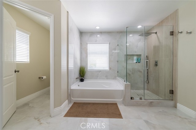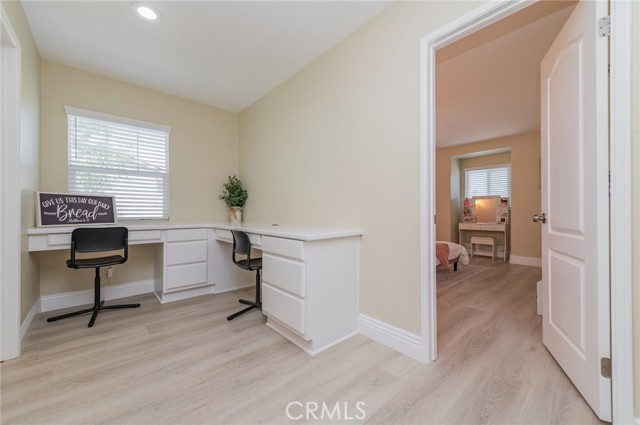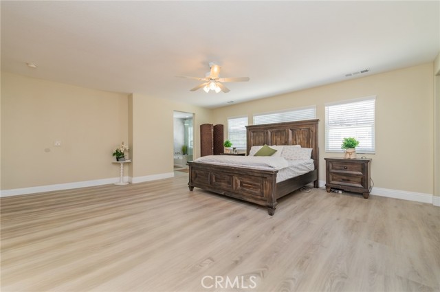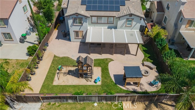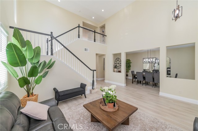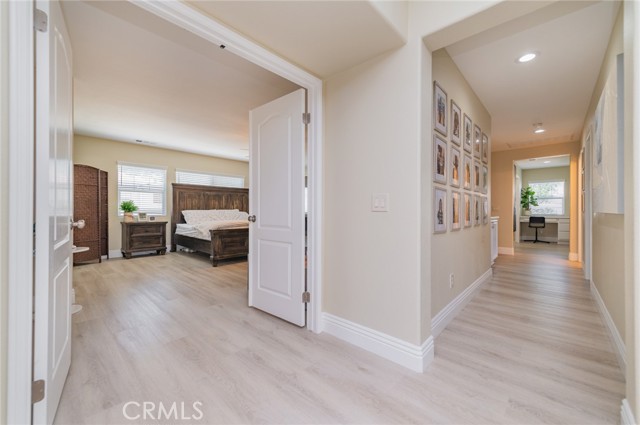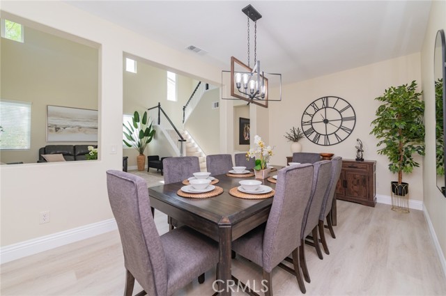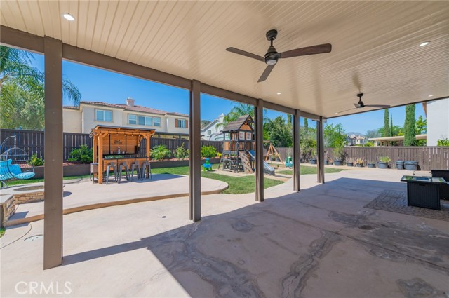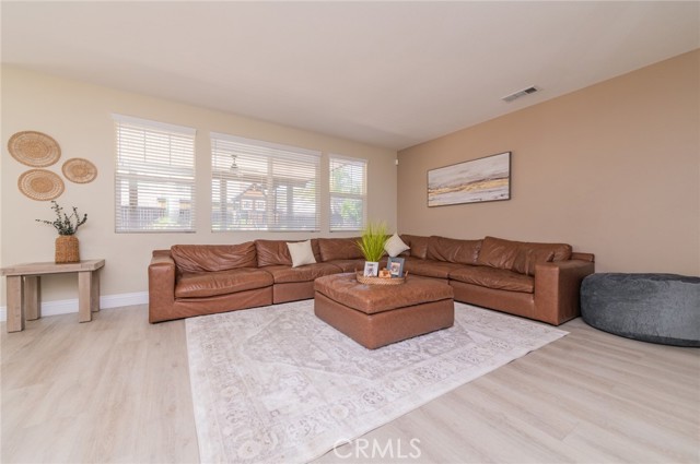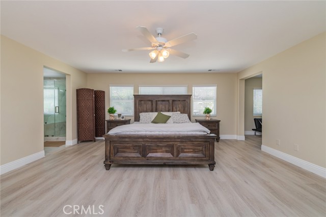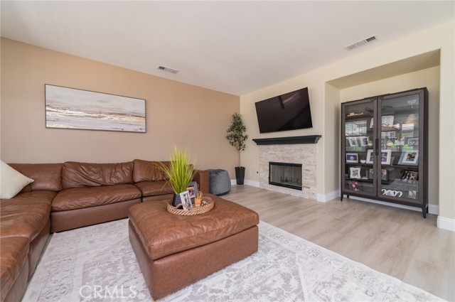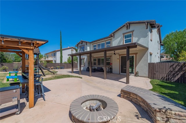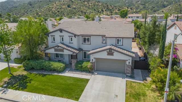 Prime Location in Windstone Ranch – A True Gem! Fully remodeled and move-in ready, this exceptional home offers 4 bedrooms, each with its own walk-in closet and 3 full bathrooms featuring new vanities and toilets. The formal living room, enhanced with updated lighting, and the separate dining room with elegant chandeliers create the perfect setting for entertaining. The gourmet kitchen features quartz countertops, refinished cabinetry, a center island, a wine cooler, stainless steel appliances, and recessed lighting, and seamlessly opens into a spacious family room with a cozy fireplace. Upstairs, a convenient laundry room, walk-in linen closet, and built-in study area provide both comfort and functionality for modern living. The luxurious primary suite, connected to the fifth bedroom/retreat, features a beautifully remodeled bathroom with a soaking tub, separate shower, upgraded dual vanities, and a spacious walk-in closet. Recent upgrades include fresh interior and exterior paint, new vinyl flooring throughout, energy-efficient LED lighting, and new front-facing windows that enhance both curb appeal and efficiency. The home also includes leased solar panels for added energy savings. Step outside to an entertainer’s backyard featuring a newly installed vinyl-covered patio with ceiling fans and recessed lighting, a firepit, and a kid-friendly play area. Additional highlights include a 3-car tandem garage. Enjoy walking access to the Tot Lot and scenic equestrian trails. Located in a quiet neighborhood with convenient access to schools, parks, shopping, dining, and the I-15 and 215 freeways, this home offers an exceptional blend of style, comfort, and location. This is a must-see home, schedule your showing today.