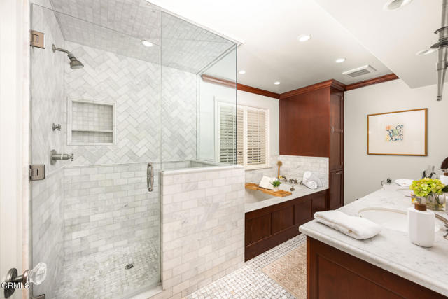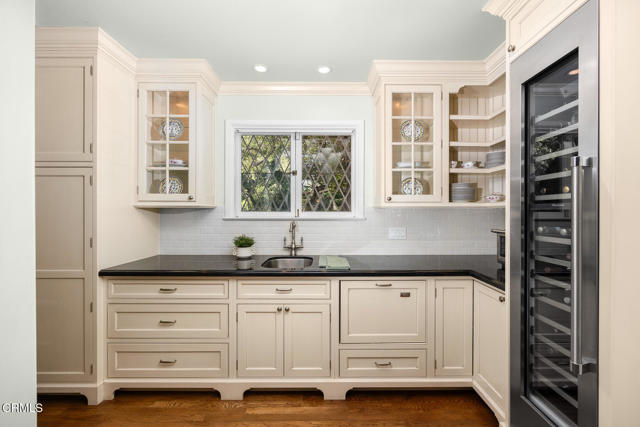 Elegantly nestled on over half an acre in the prestigious Meadow Grove enclave of La Canada Flintridge, this 1926 English Revival Estate is a masterpiece of architectural heritage and modern refinement. Designed by the esteemed Ray J. Kieffer and crafted by renowned builder Glenn O. Winget, the home exudes timeless charm while seamlessly integrating thoughtful updates for contemporary living. From the moment you arrive, the estate captivates with its commanding presence, framed by a circular drive and lush, park-like grounds that radiate privacy and tranquility. The arched entryway welcomes you into a grand living room, where soaring beamed coffered ceilings, leaded glass windows, and a stately fireplace create an ambiance of classic sophistication. Beyond, a warm and inviting family room unfolds into a chef's kitchen that's both stylish and functional, featuring a central island, custom cabinetry, and luxurious stone countertops. High-end appliances, including double ovens, a six-burner range, wine fridge, and an oversized refrigerator, make this space a culinary dream, while an adjacent laundry room with a three-quarter bath and a second-floor bedroom with half bath add thoughtful convenience.Perfectly suited for entertaining, the formal dining room flows effortlessly to a chic lounge-style bar, while just beyond a comfortable den offers an additional space for relaxation. A private hallway leads to a generously sized guest bedroom with detached guest bathroom. A separate wing offers a serene primary suite, complete with sophisticated finishes and a spa-inspired bathroom designed for ultimate relaxation. Two guest bedroom ensuites sit upstairs, featuring large closets and each with it's own office alcove. Step outside to discover a professionally landscaped oasis designed for both leisure and entertainment. A sprawling covered patio, accessible from the main living areas, is equipped with an outdoor kitchen, built-in BBQ, space heaters, and a cozy outdoor fireplace. The elevated pool and spa, adorned with tranquil water features, promise endless enjoyment, while a batting and golfing cage tucked under the shade of mature oak trees adds a touch of playful luxury. For car enthusiasts, the detached garage with attic storage accessed by pull-down ladder, and additional gated parking provide ample space. This estate is the perfect blend of timeless elegance and modern functionality, with award-winning schools, offering an unparalleled lifestyle opportunity