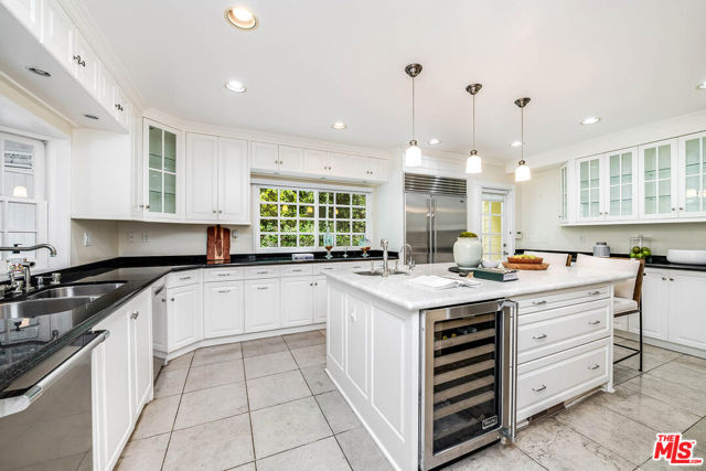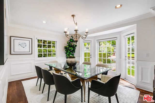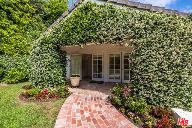 Spanning almost 4,800 square feet, including a fully permitted 558-square-foot ADU, this exceptional traditional residence offers a rare five-bedroom, six-bath compound on one of Holmby Westwood's most coveted streets. Beautifully positioned on a flat lot along prestigious, tree-lined Loring Avenue, the residence showcases refined detailing throughout, including crown moldings, hardwood floors, wainscoting, and French doors that open across the rear of the home to the expansive grounds. There are 4 second level bedrooms. The primary suite is a true retreat, featuring a sitting area with fireplace, French doors opening to a private balcony overlooking the garden, generous dual closets, and a luxurious step-down marble bath with vanity, soaking tub and separate shower. Three additional upstairs bedrooms each offer ensuite baths, providing comfort and privacy for family and guests. Designed for both elegant entertaining and relaxed daily living, the home features a grand formal living room with fireplace, formal dining room with bay windows, a sophisticated den or office with wet bar, and an inviting family room that flows effortlessly into the breakfast area and gourmet kitchen. The kitchen is appointed with marble countertops, high-end stainless appliances, a large pantry, and an oversized center island.The private backyard evokes the quintessential California lifestyle, with mature landscaping, brick patio, grassy lawn, spa, and an extraordinary 525-square-foot covered outdoor living area ideal for year-round entertaining, alfresco dining, and game-day gatherings. The detached ADU includes a sitting area, bedroom, and full bath, offering exceptional flexibility for guests, extended family, or a private workspace.Ideally located moments from Warner Avenue Elementary, Holmby Park, Century City, Beverly Hills, UCLA, and Westwood Village, this move-in-ready residence represents a rare opportunity to own an updated classic in one of the neighborhood's most prestigious settings.