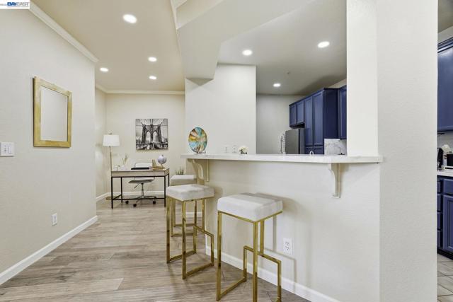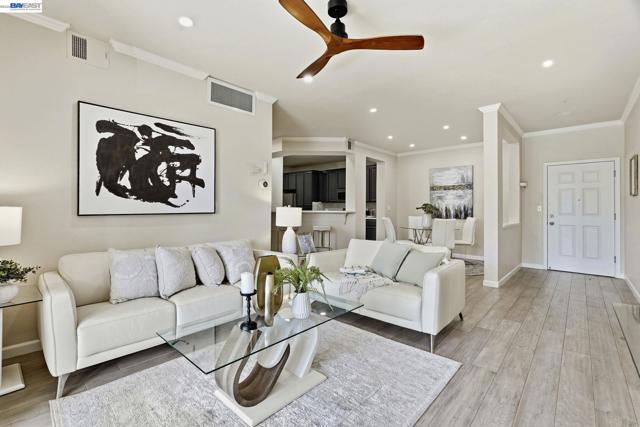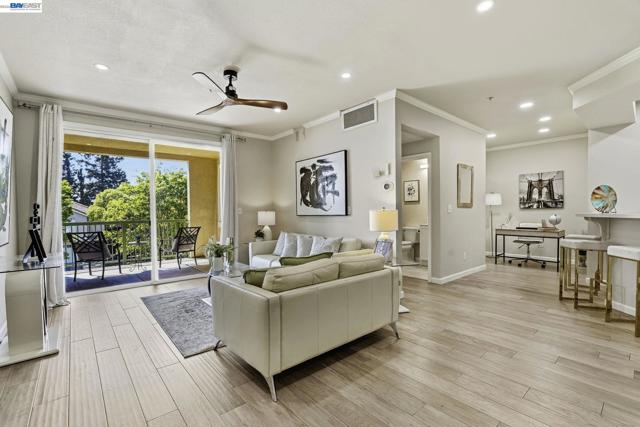 Built in 2000 and tastefully updated, this move-in ready 2-bedroom, 2-bath condo is located in a gated, well-maintained community with elevator access for added convenience. Ideally situated in Fremont’s highly sought-after Parkmont Elementary School district and top-rated school system. The bright, sun-filled interior features an open, functional layout designed for modern living. The spacious living area flows seamlessly into a fully upgraded kitchen with granite countertops, offering both style and everyday practicality. Engineered wood flooring extends through the living room, while the kitchen is finished with tile flooring. Both bedrooms are newly updated with carpet and include walk-in closets. The primary suite is generously sized, while the second bedroom is equally bright and comfortable. A private balcony provides additional space to relax and enjoy natural light throughout the day. Additional features include an in-unit laundry room, covered garage parking with storage, and HOA-covered water and trash. The secure community offers amenities such as a pool, sauna, and clubhouse. Conveniently located near BART, Lake Elizabeth, the library, shopping, dining, and commuter routes, this home offers comfort and convenience in an ideal Fremont location.