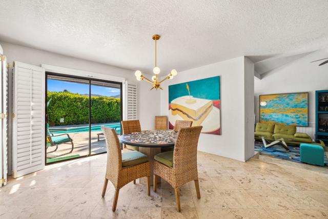Don't miss the opportunity to own this well-located Vista Norte home on a large (10,890 sq ft) corner lot with expansive south and west mountain views, a large pool and spa, and multiple outdoor areas designed for relaxing and entertaining. This 3-bedroom, 2-bath home offers a spacious, light-filled floor plan including a sunken living room with high ceilings, and a primary suite with direct patio access and an updated ensuite bath. Thoughtfully curated by a professional set designer, the home blends clean design with personality while maintaining comfort and functionality. The private backyard also features a putting green and plenty of space to enjoy the Palm Springs lifestyle. With no HOA and a successful vacation rental history, the property offers flexibility for full-time living, a weekend retreat, or income potential. The Vista Norte neighborhood is not currently capped on short-term rental permits, giving the next owner the option to pursue vacation rental use if desired (buyer to verify). Grocery, gym, Starbucks, and other amenities are very close by, and downtown Palm Springs is just a 5-minute drive away. Offered furnished per inventory.