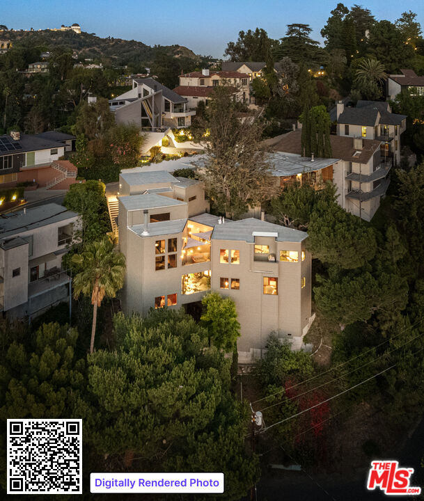 Perched above the city on a quiet street in the coveted Los Feliz Oaks, this architectural residence by Tony Ngai, AIA, is a rare offering of design, privacy, and breathtaking scale. Thoughtfully positioned to embrace its surroundings, the home captures sweeping canyon, city, and ocean views, creating a seamless connection between nature and modern living. A dramatic living room with soaring ceilings, expansive windows, and a custom fireplace anchors the home, opening to terraces that invite an effortless indoor-outdoor experience. Natural light moves beautifully throughout the space from morning to sunset, while the loft above adds dimension and flexibility. Designed for both everyday comfort and entertaining, the home offers multiple gathering spaces, including a sophisticated media room and a light-filled dining area that flows into the chef's kitchen, outfitted with Sub-Zero, Gaggenau, and Bosch appliances. Extensive upgrades and curated finishes elevate the home throughout, including mahogany floors, custom cherry interior doors with Valli & Valli hardware, Ann Sacks and Walker Zanger tile, and Lutron smart lighting. The primary suite is a true retreat, featuring its own fireplace, custom closets, and a spa-inspired bath with radiant heated limestone floors, Duravit porcelain sinks, a Kohler soaking tub, and exquisite custom woodwork. Two additional bedrooms offer generous scale and storage, each thoughtfully designed with high-end finishes. Additional amenities include automatic shades, a temperature-controlled wine closet, EV-ready garage with dual 220V outlets, upgraded electrical and HVAC systems, tankless water heater, integrated security cameras, and smart home features throughout. Lush, drought-tolerant landscaping and automated irrigation complete the private, tranquil setting. Moments from Griffith Park, the Observatory, the Hollywood Bowl, Greek Theatre, Franklin Village and Beachwood Canyon, this is quintessential Hollywood Hills living. Now is your chance to own a private sanctuary that is architecturally significant, deeply intentional, and effortlessly connected to its surroundings.