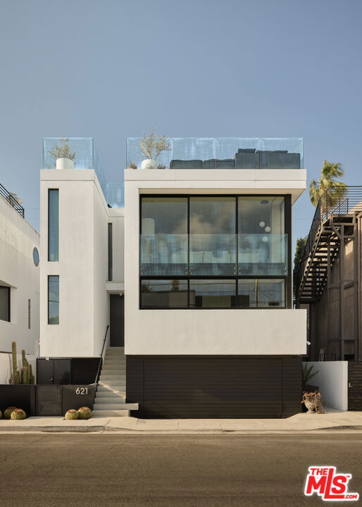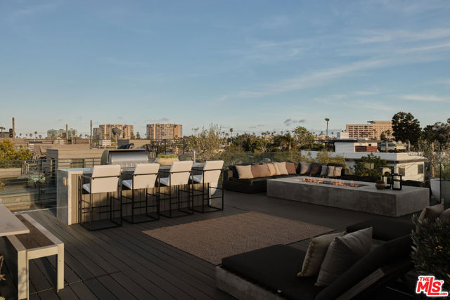 Ultra-sophisticated, this modern Venice residence showcases walls of glass, expansive living spaces, and a private rooftop deck capturing sweeping views. Spanning nearly 3,000 square feet, the three-bedroom, four-bath home offers a refined coastal lifestyle just moments from the boutiques and dining of Abbot Kinney and the beach. The main level unfolds as a bright, open-concept floor plan where floor-to-ceiling windows flood the interiors with natural light and create a seamless indoor-outdoor feel. Anchoring the dining area, a double-sided fireplace adds architectural presence, while the adjacent chef's kitchen features a sculptural island, integrated appliances, and a marble backsplash. The primary suite is a serene retreat, highlighted by a wall of glass overlooking lush greenery and a spa-like bath with a glass-enclosed shower, soaking tub, and dual-sink vanity. Designed for both elevated entertaining and relaxed everyday living, the expansive rooftop deck offers a true outdoor oasis with a built-in BBQ, lounge seating, dining area, and fire pit, perfect for hosting or enjoying intimate evenings with sweeping vistas. Thoughtfully designed throughout, this residence delivers both style and function in one of the Westside's most coveted locations.