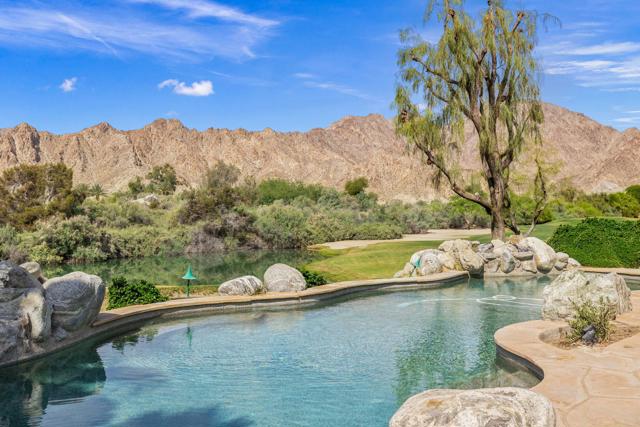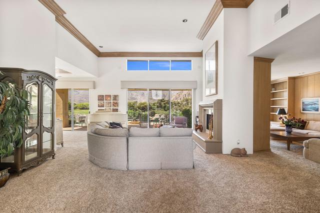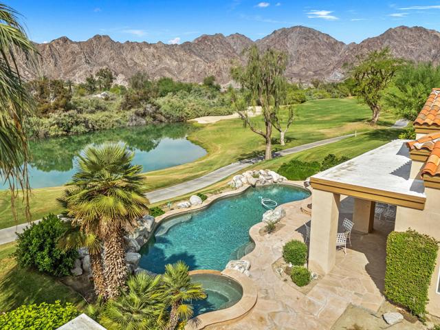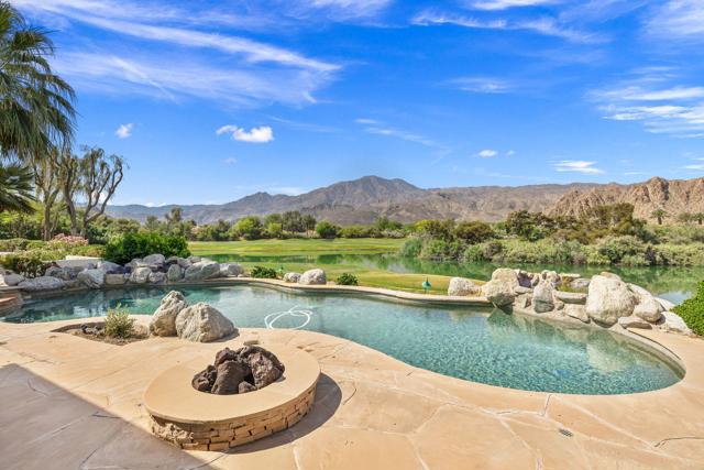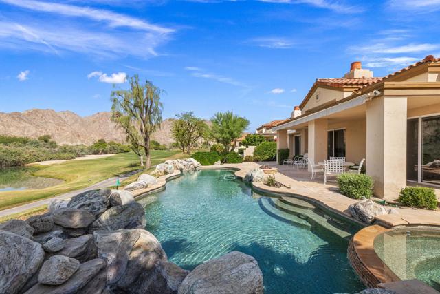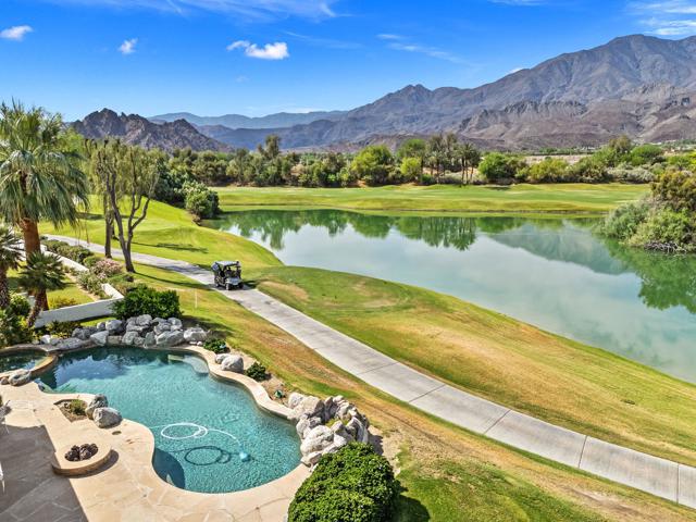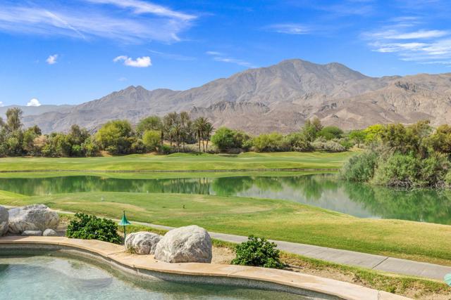 OPPORTUNITY awaits you to TRANSFORM this original 1990 residence into your own CUSTOM RETREAT. Located on the 16th hole of the PGA Nicklaus Private Course, this property captures unobstructed SOUTHWEST VIEWS overlooking the private pool and spa, fairway, lake, and the breathtaking 180-degree panorama view of the Santa Rosa Mountain range. MAIN home features a spacious living area with vaulted ceilings, fireplace, and sit-down wet bar, all oriented to take in the spectacular golf course and mountain views. Large patio doors open to the entertainment patio with a retractable awning creating seamless indoor-outdoor living. The expansive kitchen and dining area open to the BBQ patio, ideal for casual gatherings and entertainment. PRIMARY Bedroom suite and GUEST Bedroom suite both offer ensuite baths and sliding glass doors opening to the private interior courtyard. A converted GUEST Bedroom now serves as a den or media room just off the living room with a private two-piece lavatory and sliding glass doors opening to the view patio. A guest POWDER room and oversized LAUNDRY room complete the main residence. DETACHED CASITA overlooks the private interior courtyard, offering wonderful flexibility for guests or a private office. The property also includes a large two-bay attached garage plus a separate entry golf cart garage attached to the Casita-ideal conversion to an art studio, workshop, or additional creative space. This is a rare opportunity to RENOVATE, UPGRADE, and LANDSCAPE to your personal taste while enjoying an exceptional setting and unforgettable views.